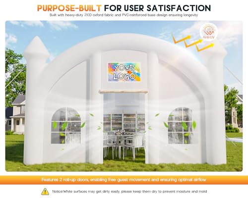- Easy to Install and Storage: Set the vibe in just minutes, with the included 1100W powered blower and 2 quick-deflate zippers. And you will get D-rings, ropes, ground nails, repair cloth and sandbags to enhance the stability of the event tent