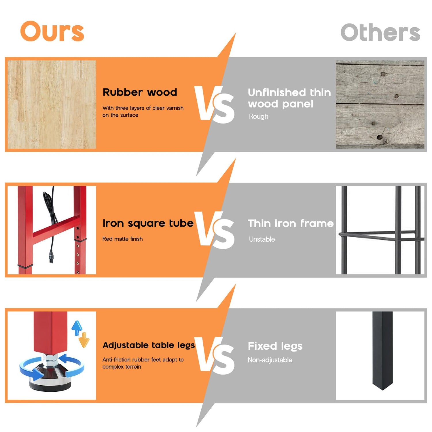 - Stable and Durable: Work bench features 1" thick finished rubberwood top and steel frame with 2000 lbs weight capacity. Greatly improve stability and durability