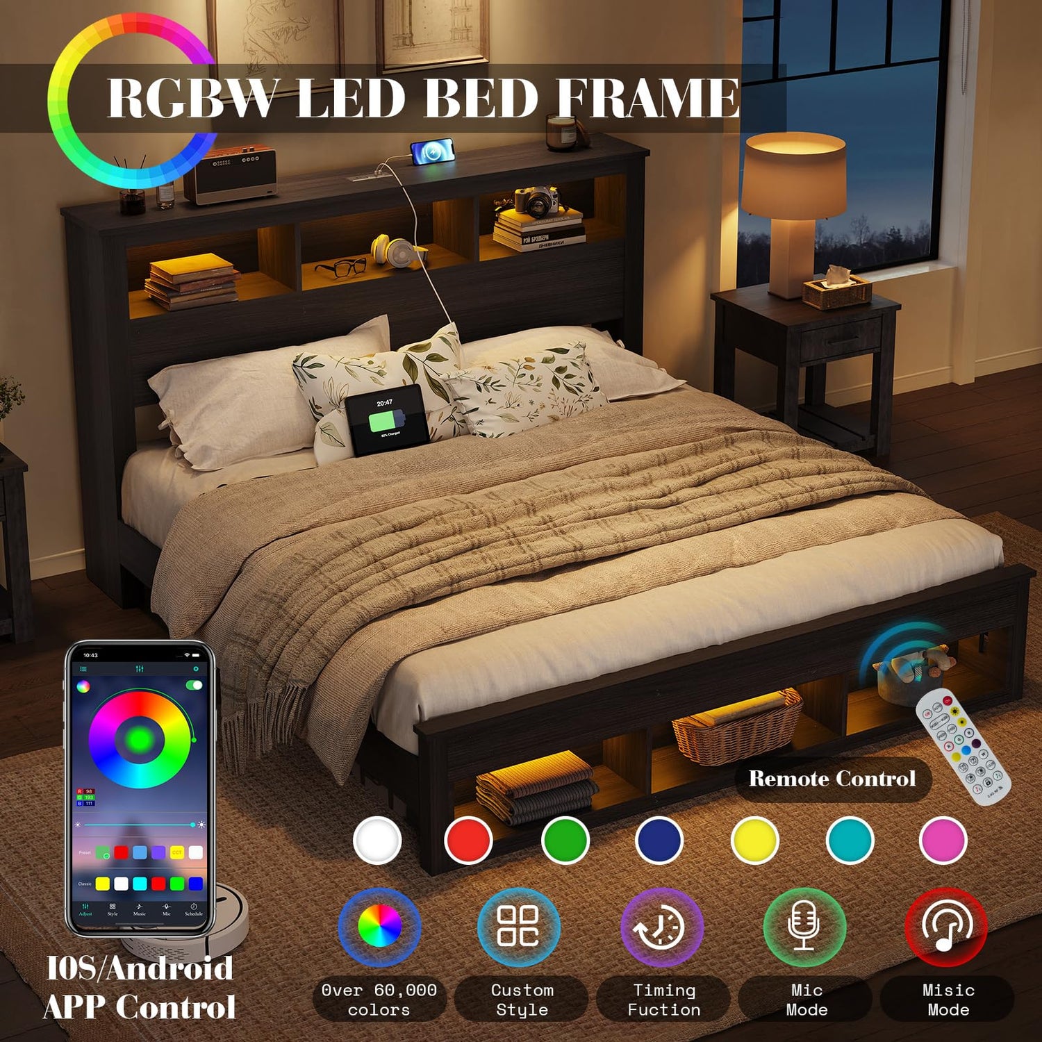 Details: Introducing the Albott Farmhouse Bed Frame, a perfect fusion of charm and modern functionality. This stunning wood bed frame is designed to elevate your bedroom with its sleek black finish and classic farmhouse appeal. Crafted with a spacious bookcase headboard and footboard, this storage bed frame offers ample space to keep your books, decor, and other essentials neatly organized and within arm’s reach. The built-in storage compartments provide both style and practicality, ensuring that your room stays clutter-free while enhancing the overall aesthetic of your space. Whether you're furnishing a modern or farmhouse-style bedroom, this bed frame will serve as the ideal centerpiece, combining elegance and utility in one beautiful package. Built for durability and long-lasting performance, this wood bed frame is constructed with solid slats and a sturdy foundation, providing a stable, noiseless sleeping environment. The bed frame is designed to offer strong support for your mattress without the need for a box spring, making it both practical and cost-effective. The use of high-quality wood materials ensures the bed frame remains durable over time, resisting wear and tear while maintaining its charm. Enhancing the ambiance of your bedroom, the Albott LED bed frame features integrated LED lighting in the headboard and footboard. The soft, adjustable lights create a warm and inviting atmosphere, perfect for reading, relaxing, or adding a touch of elegance to your space. This LED bed frame is not only functional but also stylish, offering the perfect blend of modern convenience and classic farmhouse beauty. SPECIFICATIONS: Product Size:Full/Queen/King Color: White/Black F L 86" H 47.2" W 54.7" Q L 90.4" H 47.2" W 60.8" K L 90.4" H 47.2" W 76.8" Weight Capacity: 800lbs/1000lbs/1000lbs No Box Spring Needed Recommend Mattress:10"-12" All parts are packed in 1 box
