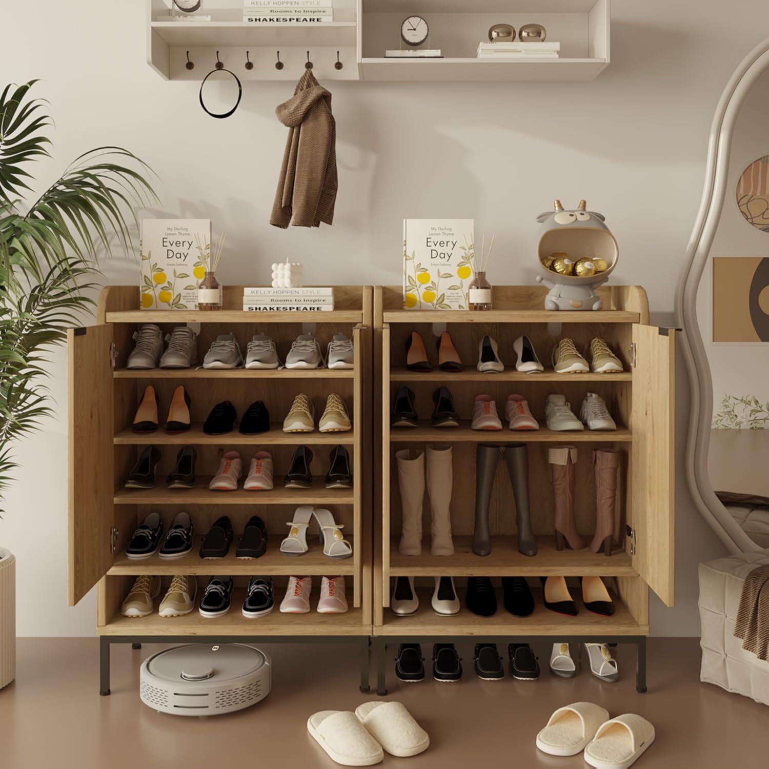 - Sturdy and durable: Our freestanding shoe rack closet shoe rack is made of high-quality wooden boards to ensure a sturdy and durable structure and long service life, and the sturdy and durable hinges allow you to open and close the door easily.