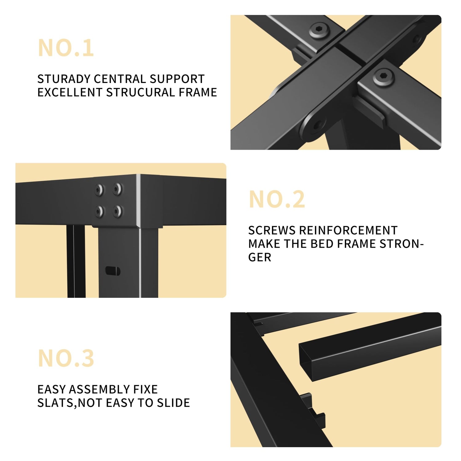 - STURDY MATERIAL - Because we have chosen the high-quality materials, this metal black bed frame queen is quite durable and solid. Unlike other beds, this black queen metal bed frame has 9 thicken legs, which has the extra strong support. We believe once you get this queen bed frames, you will like it.