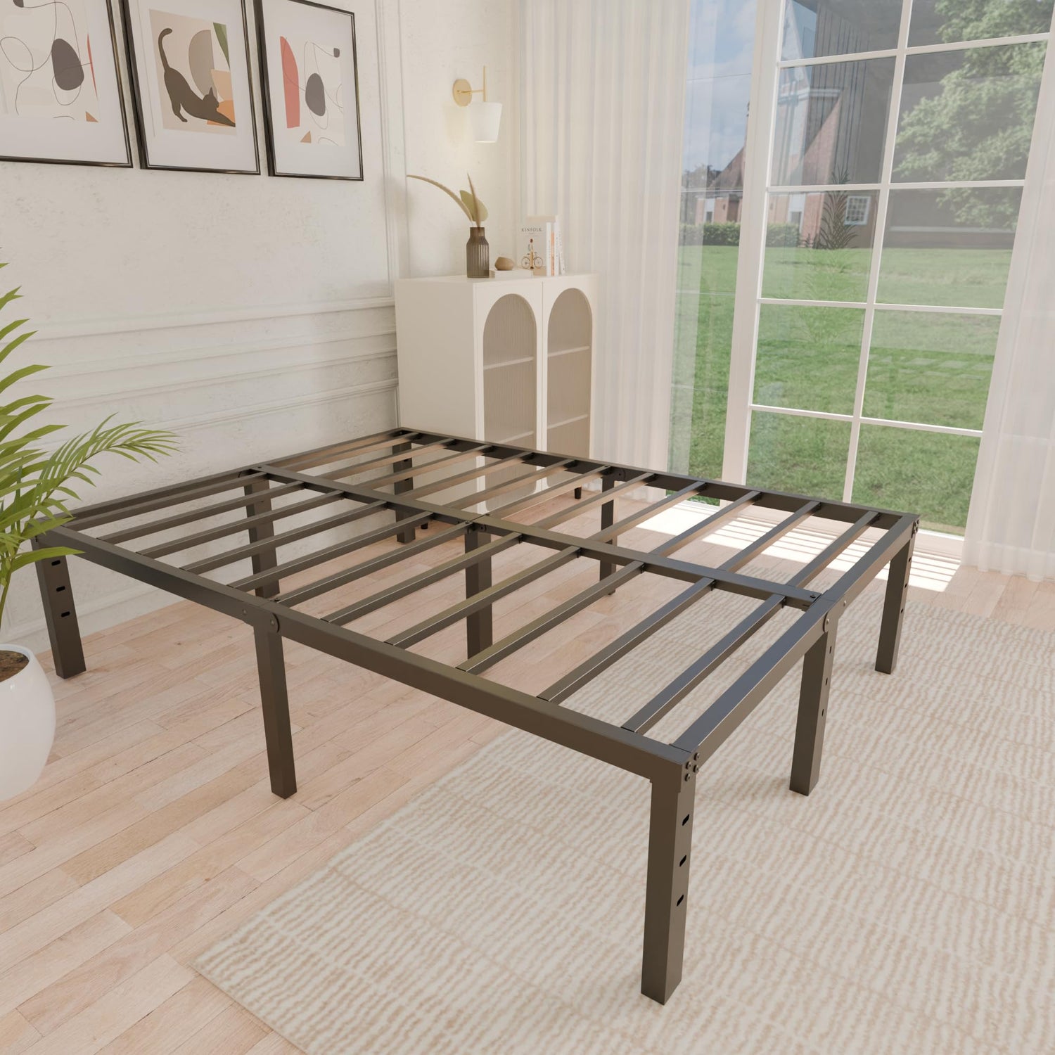 ALDRICH Metal Bed Frame Queen Size - 16 Inch Tall Black Basic Steel Slats Platform, Easy Assembly Heavy Duty Noise Free Bedframes, No Box Spring Needed