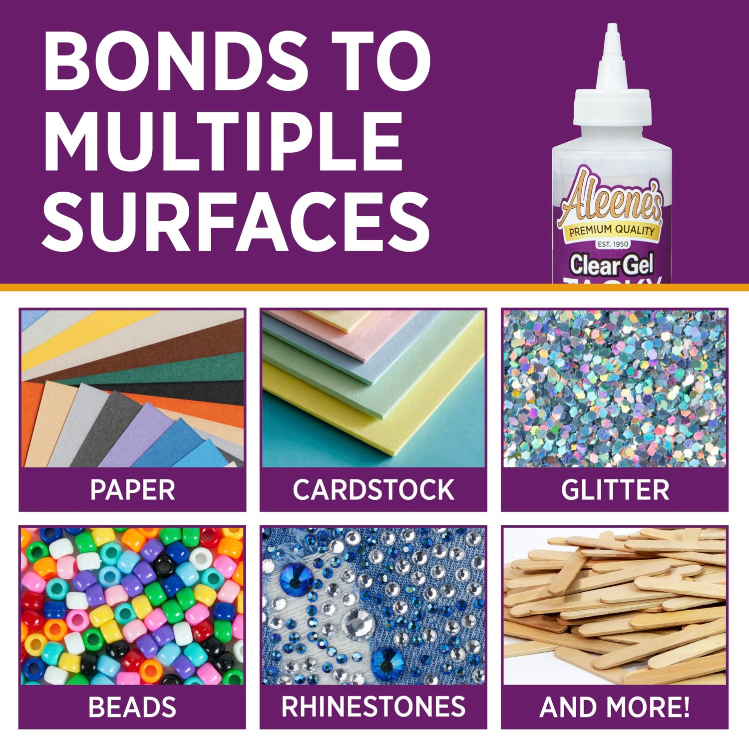 Details: This super-bonding gel goes on clear and dries crystal clear, too. The clear squeezable bottle is hand-friendly and super soft. A truly all-purpose crafting glue, Aleene'sClear Gel Tacky can be used on everything from florals to foam, wood to ceramics.