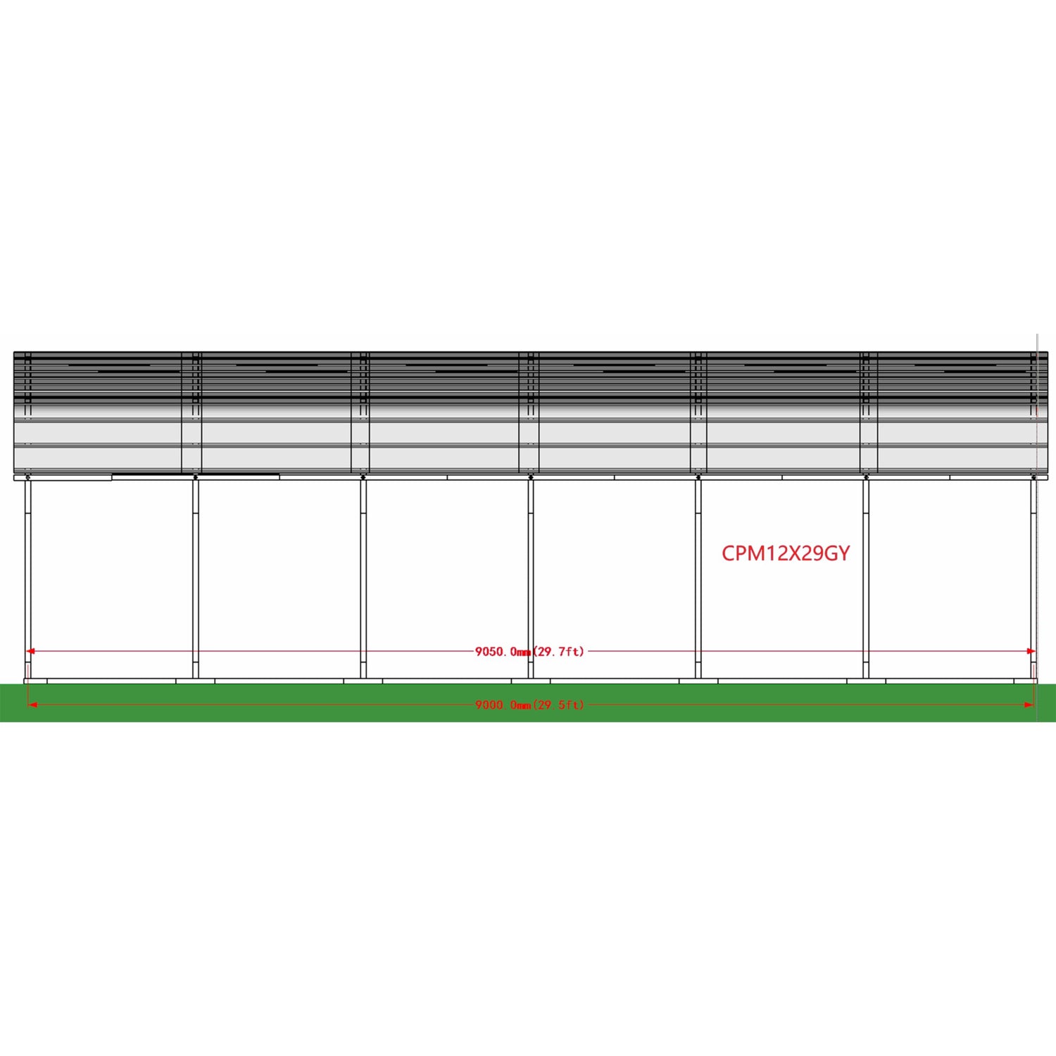 - [Dimensions] Exterior Dimensions: 29.7L x 12.3W x 9.7H ft. Interior Dimensions: 29.5L x 12.2W x 9.6H ft. Column Height (Exterior): 8.1 ft. Column Height (Interior): 7.96 ft. Peak Height (Exterior): 9.7 ft. Peak Height (Interior): 9.6 ft.