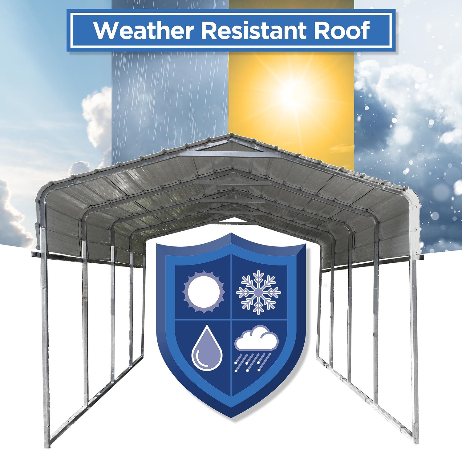 - [Year-Round, Heavy-Duty Protection] - ALEKO’s 12x30 Metal Carport offers protection for vehicles, boats, and more outdoor equipment; rust-resistant coating and heavy-duty construction offer protection from rain, snow, hail, harsh wind, pollen, tree sap, and intense sunlight to keep your valuable belongings safe year-round