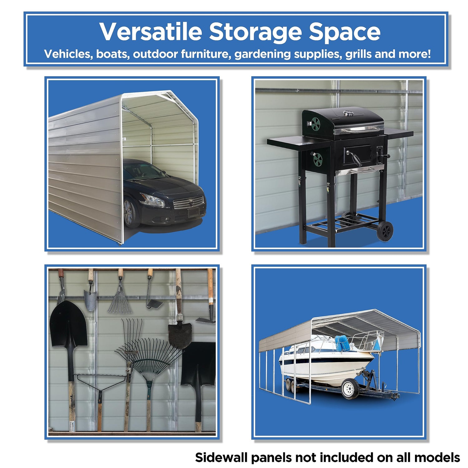 - [Generous Storage Space] - A generous roof span and 355 sq. ft. of storage space provide ample room to accommodate larger vehicles or boats