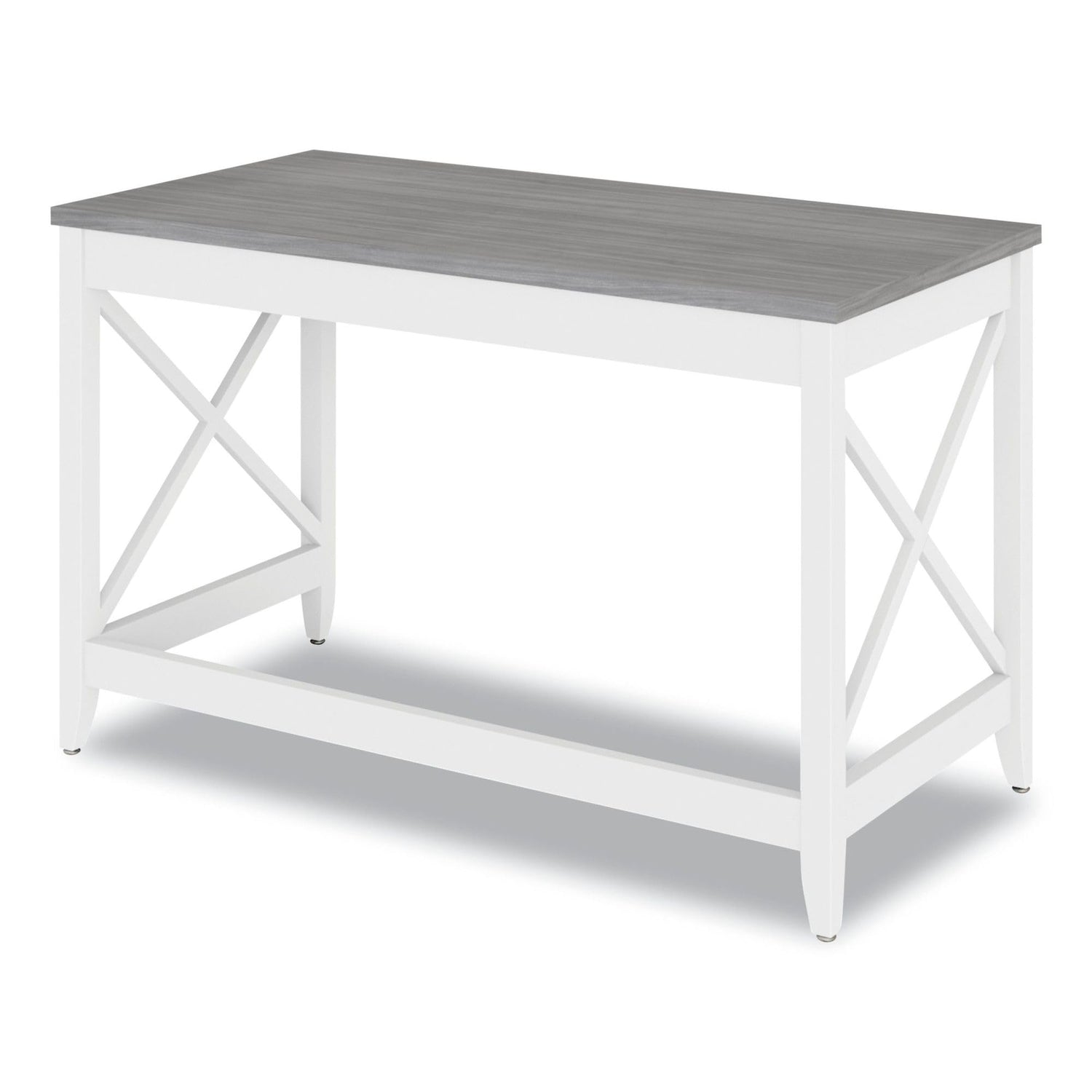 Details: Stylish farmhouse desk with X accents on side panels fits into the décor of most spaces. The multi-function desk is constructed with a smooth, laminate wood top with white wood legs. The simple design without drawers can be used as a desk or console table. The wide top surface provides ample space to work or to display decorative items. Thoughtfully finished on all sides for position flexibility within a room. Some assembly is required.