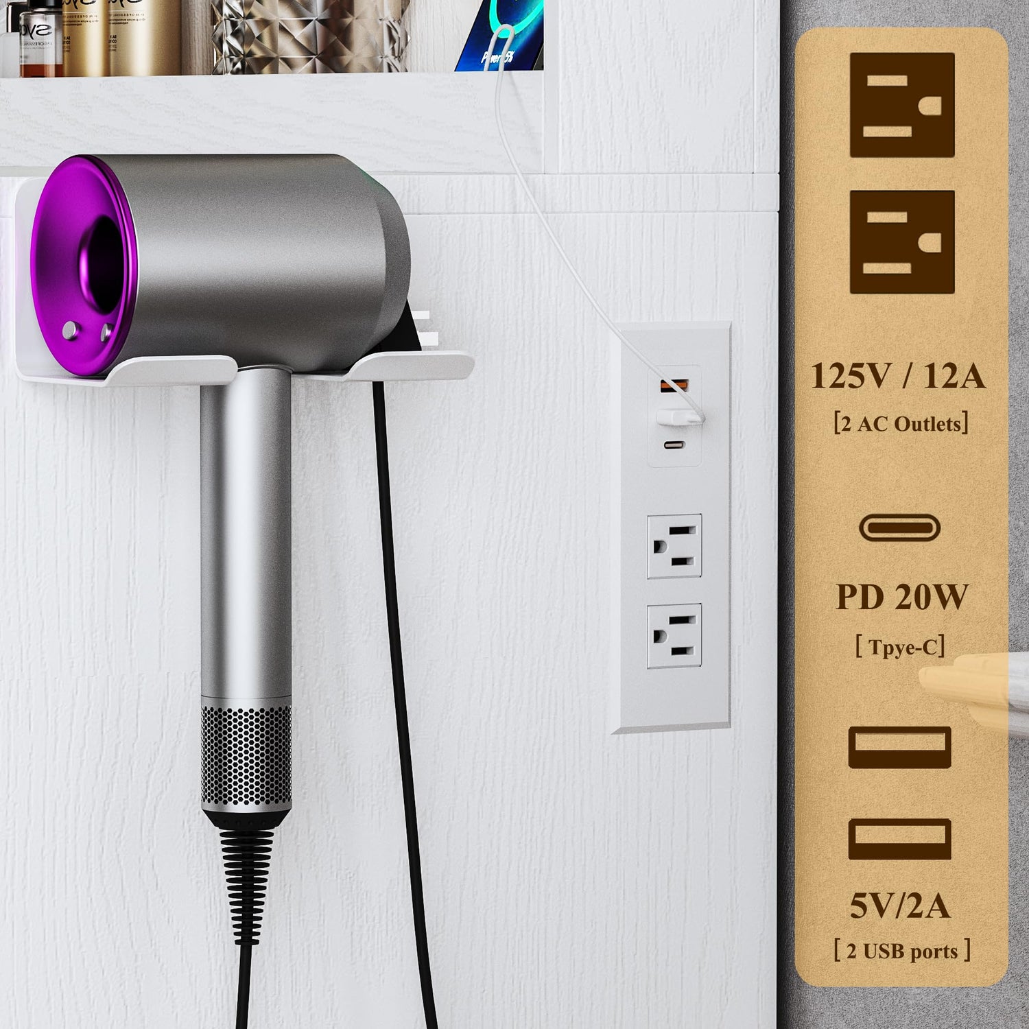 - 【Vanity Built-In Power Outlet】Built with convenience in mind, this makeup vanity desk with lights features a power outlet with 2 AC outlets, 2 USB ports, and a Type-C port. Within easy reach are the outlets you need, whether for your hair dryer, curling iron, phone, tablet, or other devices.