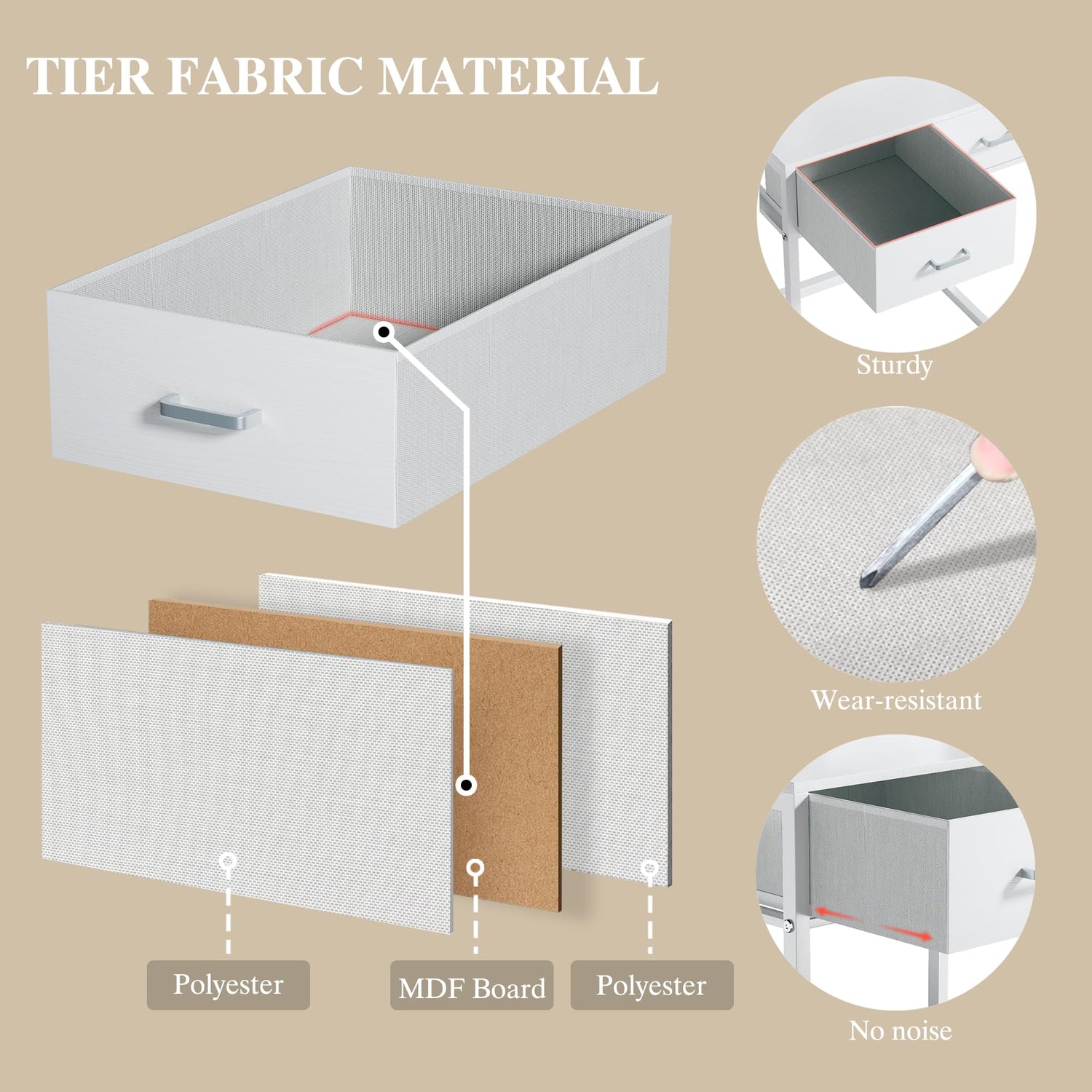 - Durable and Sturdy Vanity Desk: With fabric storage drawers, premium MDF board plus non-woven synthetic fabric increases durability; Strong metal frame of the white vanity provides excellent support for the entire structure.
