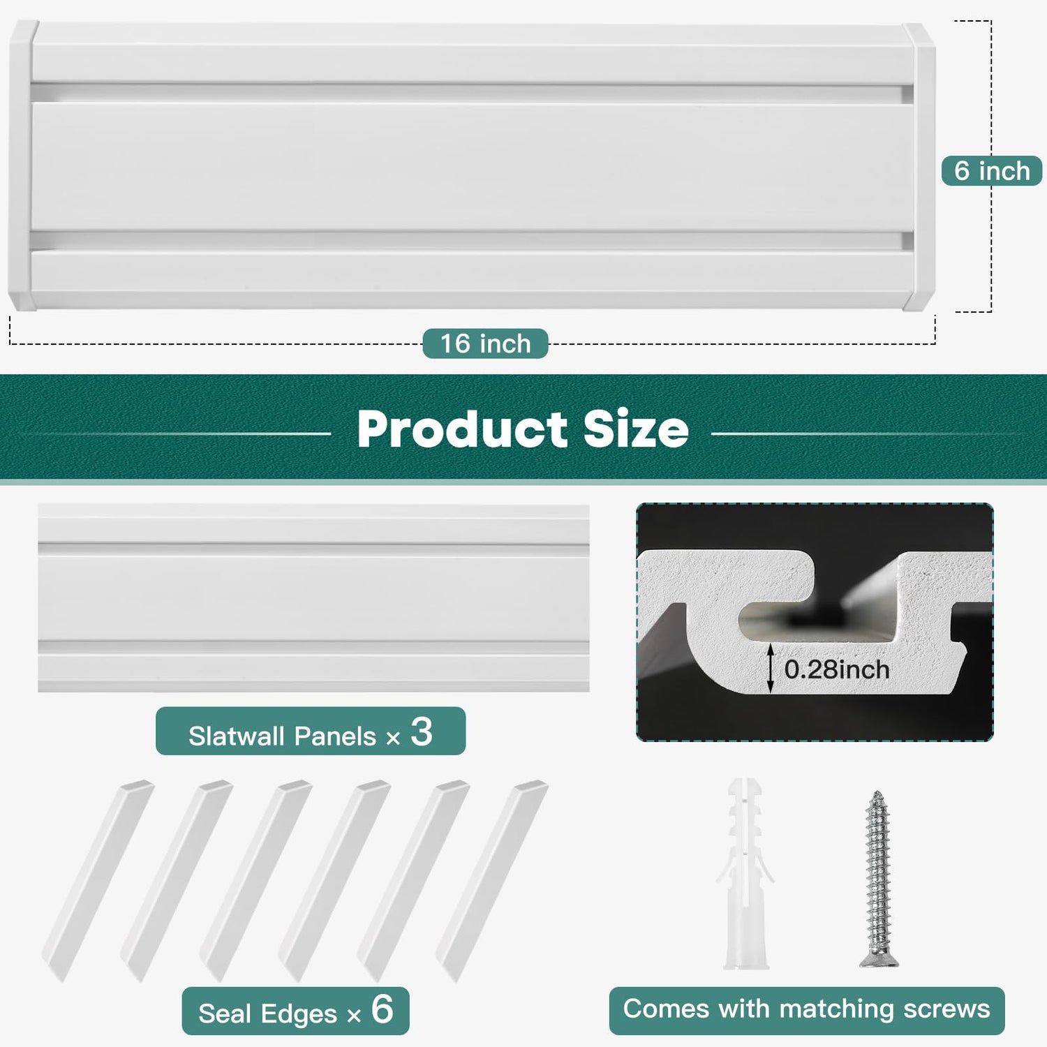 - DIMENSIONS: You will receive 3 slatted wall panels measuring 16 inches long by 6 inches high and 6 grooved strips, beautiful and sturdy. convenient for DIY assembly and customized layout, suitable for tight spaces, meet daily storage needs and provide a good using experience