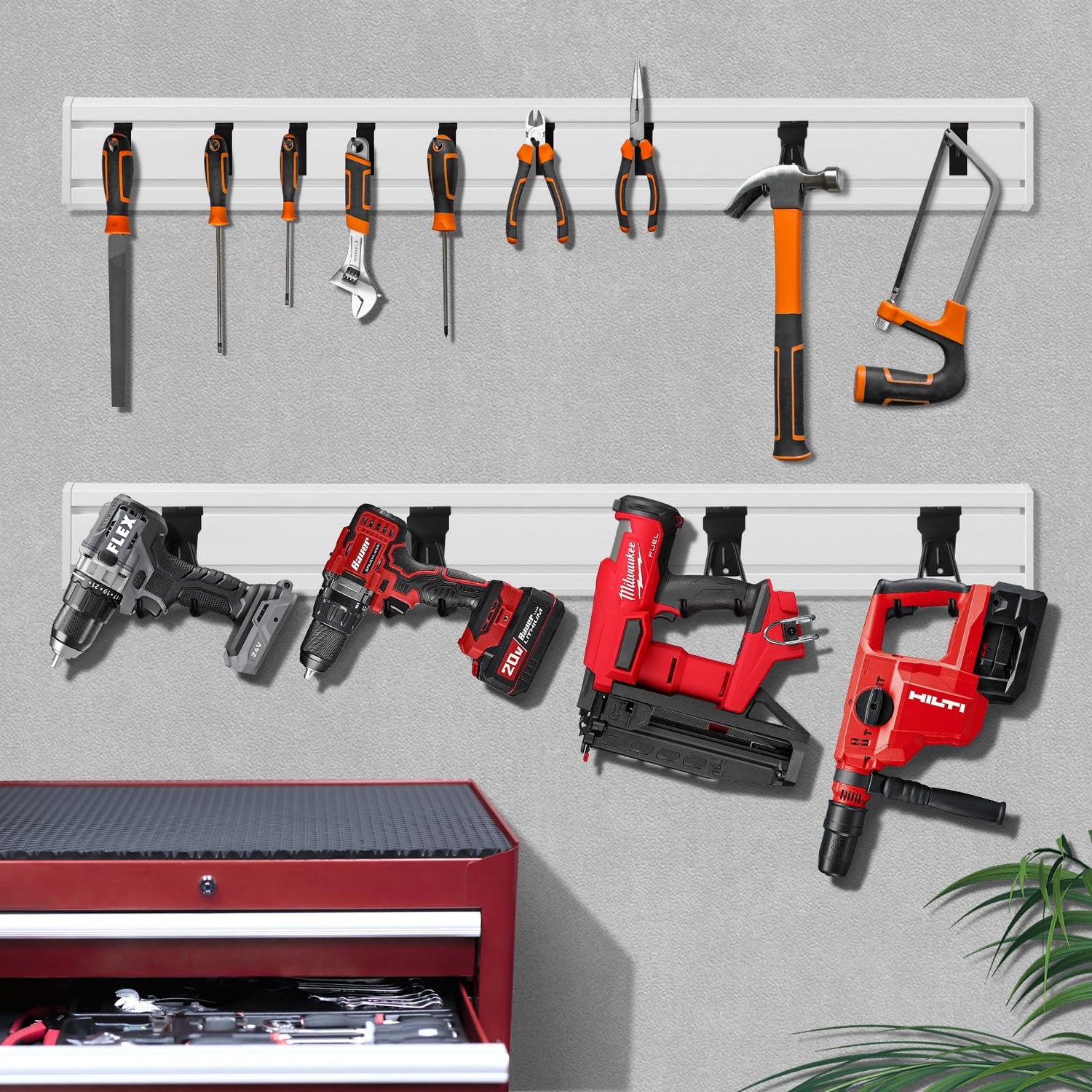 - UNIVERSAL GROOVE DESIGN: Garage wall organizer panels feature an innovative T-shaped groove design, allowing easy installation of hooks, baskets, brackets, and other accessories, enhancing product versatility to meet different storage and display needs