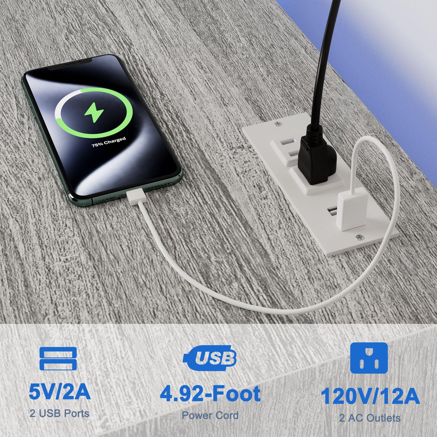 Smart charging hub: 2x 15W USB-C + 2x 110V AC outlets