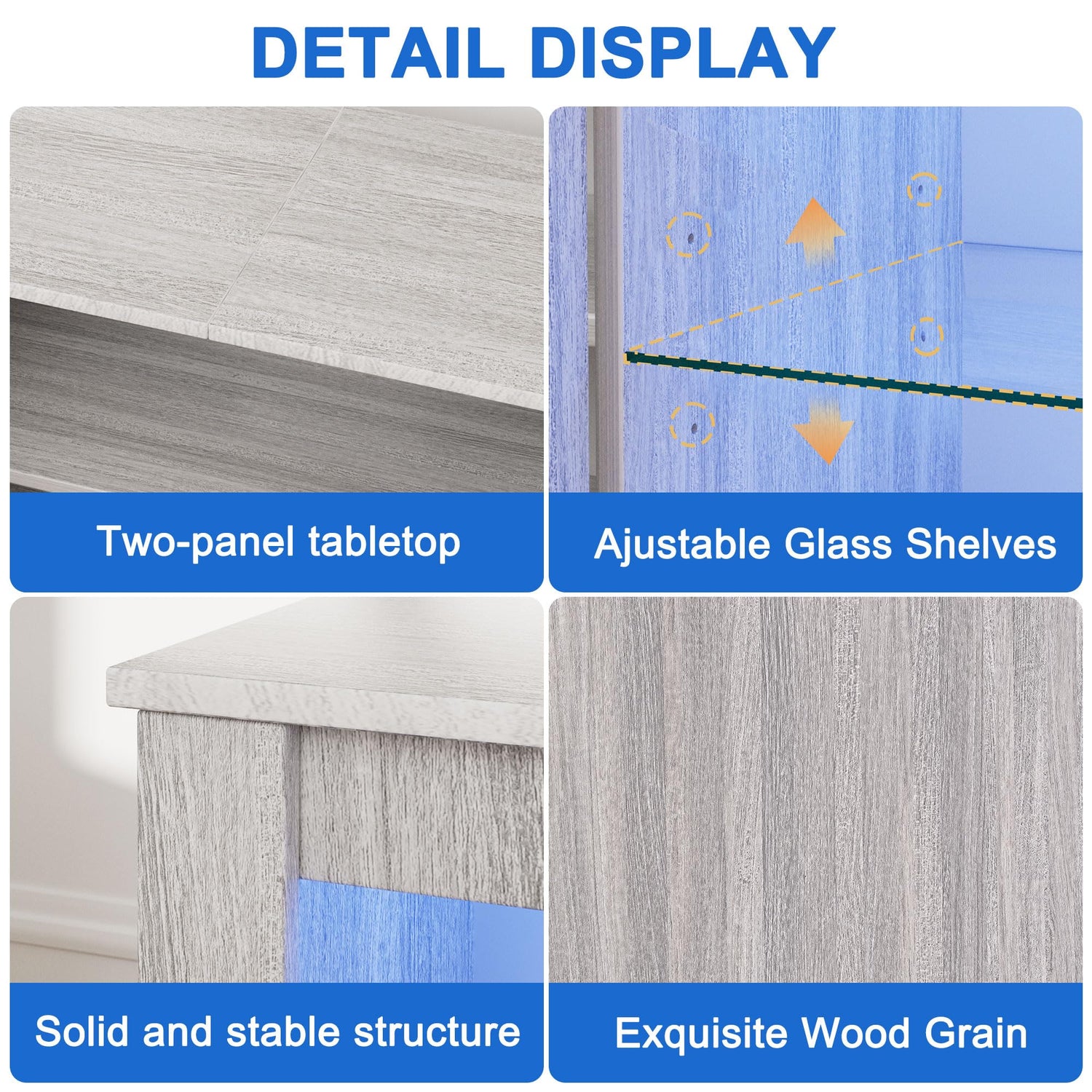 - Customizable LED Lighting: Our entertainment center comes equipped with a built-in charging station (2AC & 2USB) and LED lights that support 16 colors and 4 flashing modes. Whether for cozy movie nights or intense gaming sessions, adjust the lighting to suit any occasion.