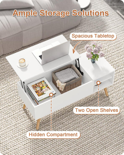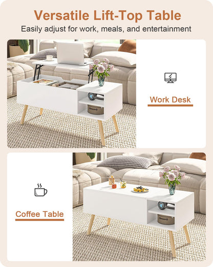 • Lift-Top Modern Design: The coffee table lift top boasts a mid-century-modern-inspired design with a lift-top tabletop that extends upward, creating an elevated work surface perfect for working, dining, or relaxing in any living space
