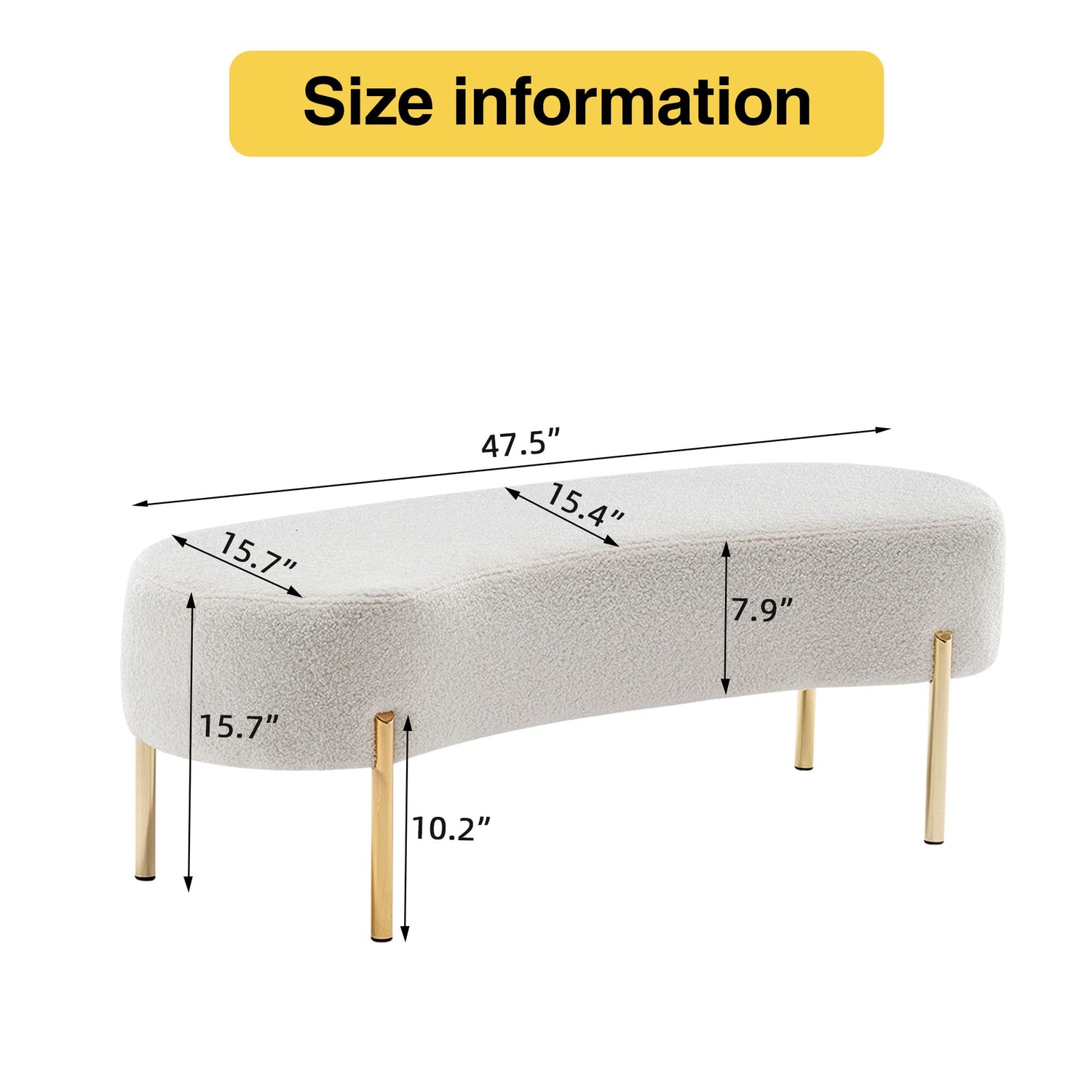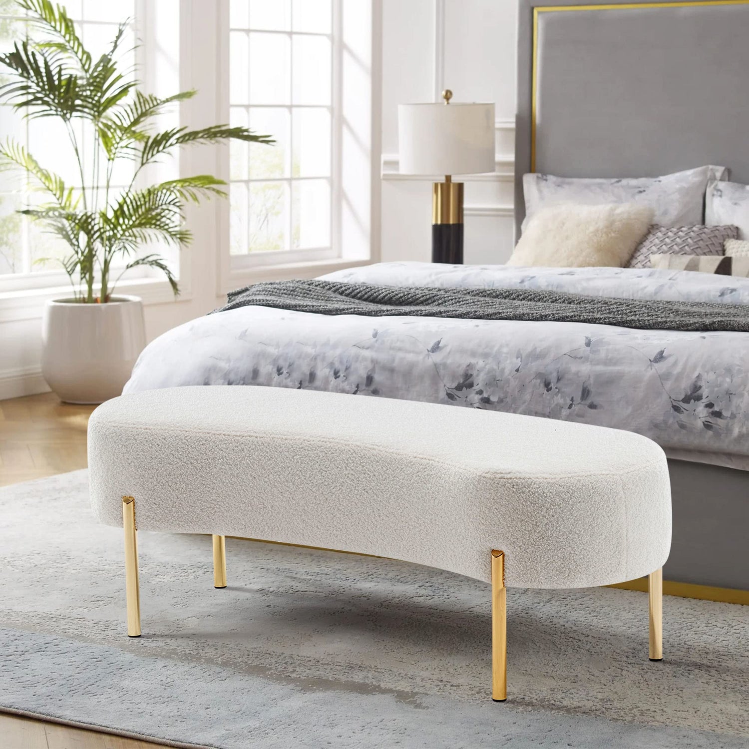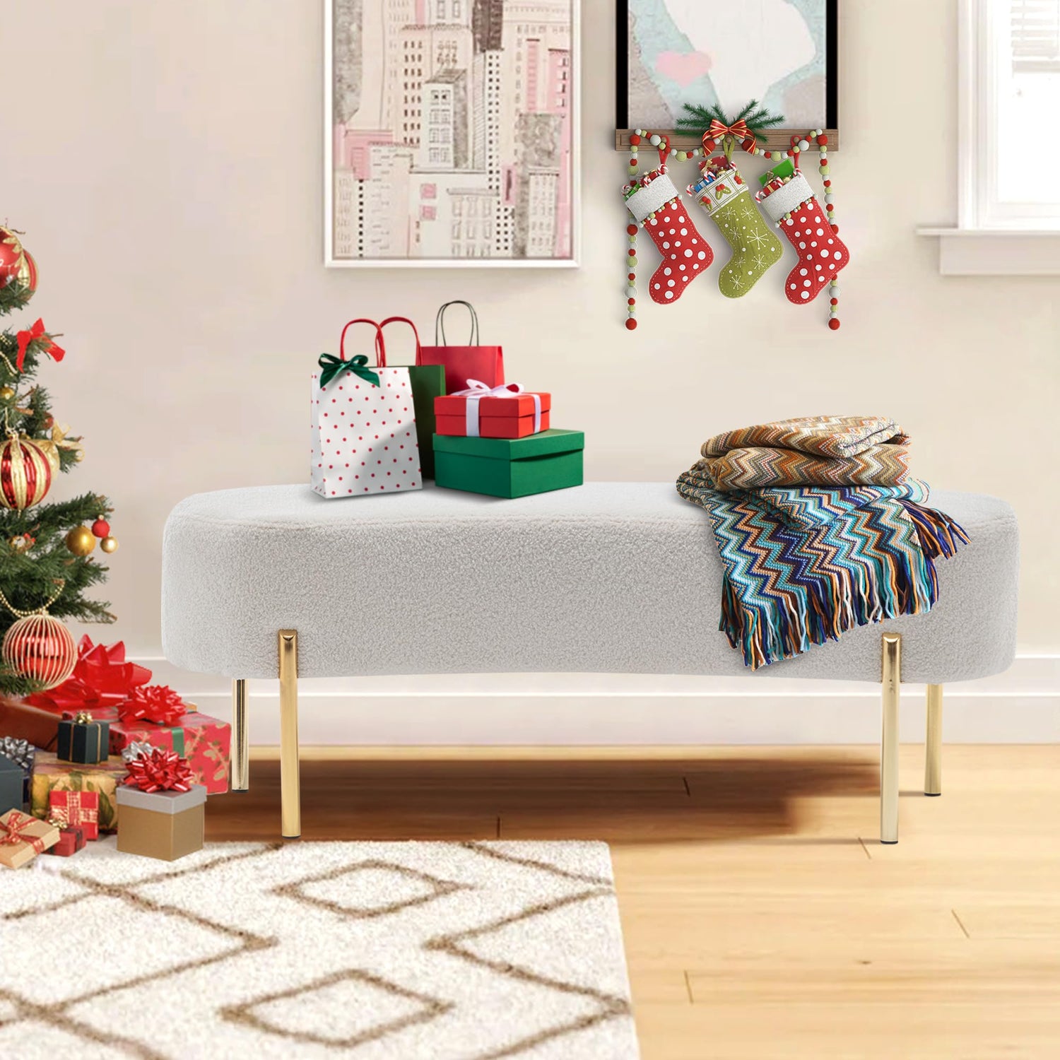 ALISH Upholstered Bench Modern Ottoman Bench Bed Bench Entryway Bench with Gold Legs for Living Room, Bedroom White