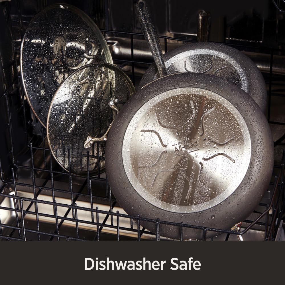 Details: Introducing the ultimate kitchen cookware sets from all-clad's ha1 nonstick collection, perfect for any cooking enthusiast. This comprehensive nonstick cookware set includes essential pan sizes: 8', 10' (with lid), and 12' (with lid) fry pans, each crafted from heavy-gauge hard-anodized aluminum for durability and consistent cooking performance. Ideal for daily cooking tasks, these all-clad nonstick frying pans offer a warp-resistant base compatible with all stovetops, including induction. Enjoy easy cleanup with the high-quality ptfe nonstick. the set includes nonstick fry pans, perfect for a variety of dishes such as frying eggs, sautéing vegetables, searing salmon, and stir-frying. The high-quality construction extends to the stylish contoured design, featuring double-riveted stainless steel handles and tempered glass lids. this set is oven safe up to 500°f, with lids oven safe up to 350°f, adding convenience and versatility to your cooking. These non stick frying pans are dishwasher safe for easy maintenance, though hand washing with a gentle soap and sponge is recommended to maintain the nonstick quality. Designed in canonsburg, pa, usa, and made in china, this nonstick pan set embodies all-clad's commitment to quality and performance, backed by a limited lifetime warranty.
