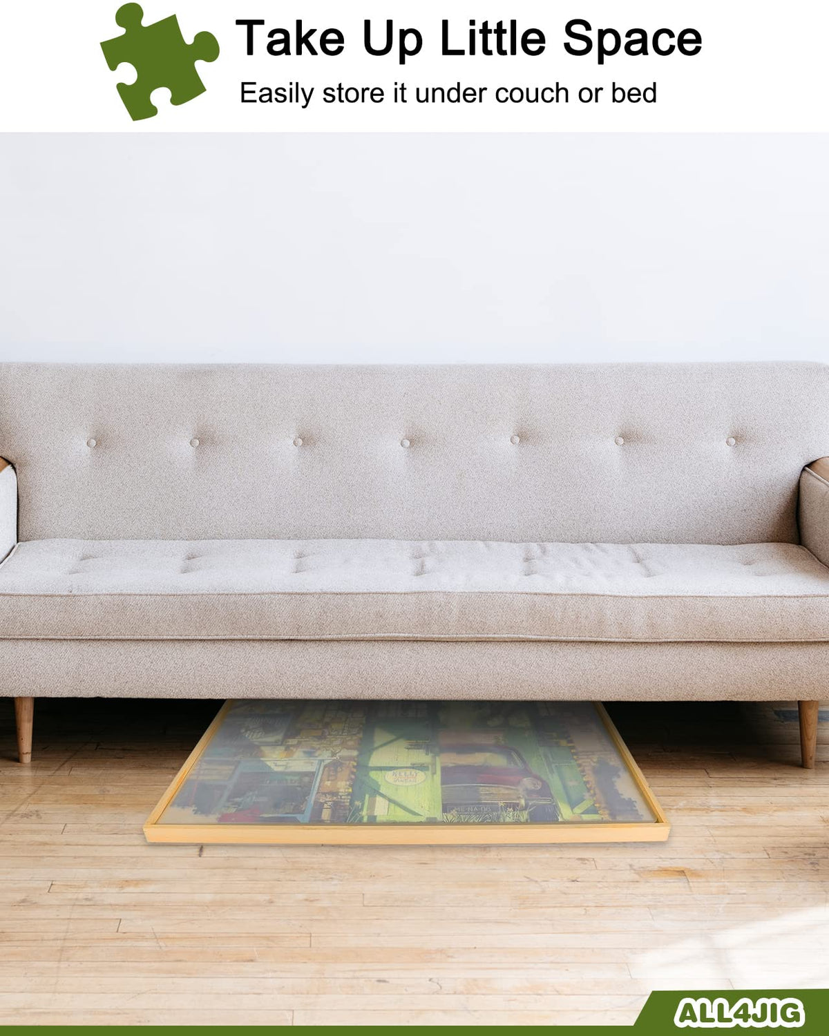 - 【5s Easy to Stow Away & Transport Puzzle】Easy lift, lightweight and balanced for quick storage.You can place your puzzle table onto any surface, countertops, coffee tables, beach blankets or even the floor.When you need an extra space for seating or dining,Just simply cover your puzzle with the puzzle cover,close the drawers and move it away under a couch or bed can your puzzle be well-stored and safely kept easily in a few seconds.