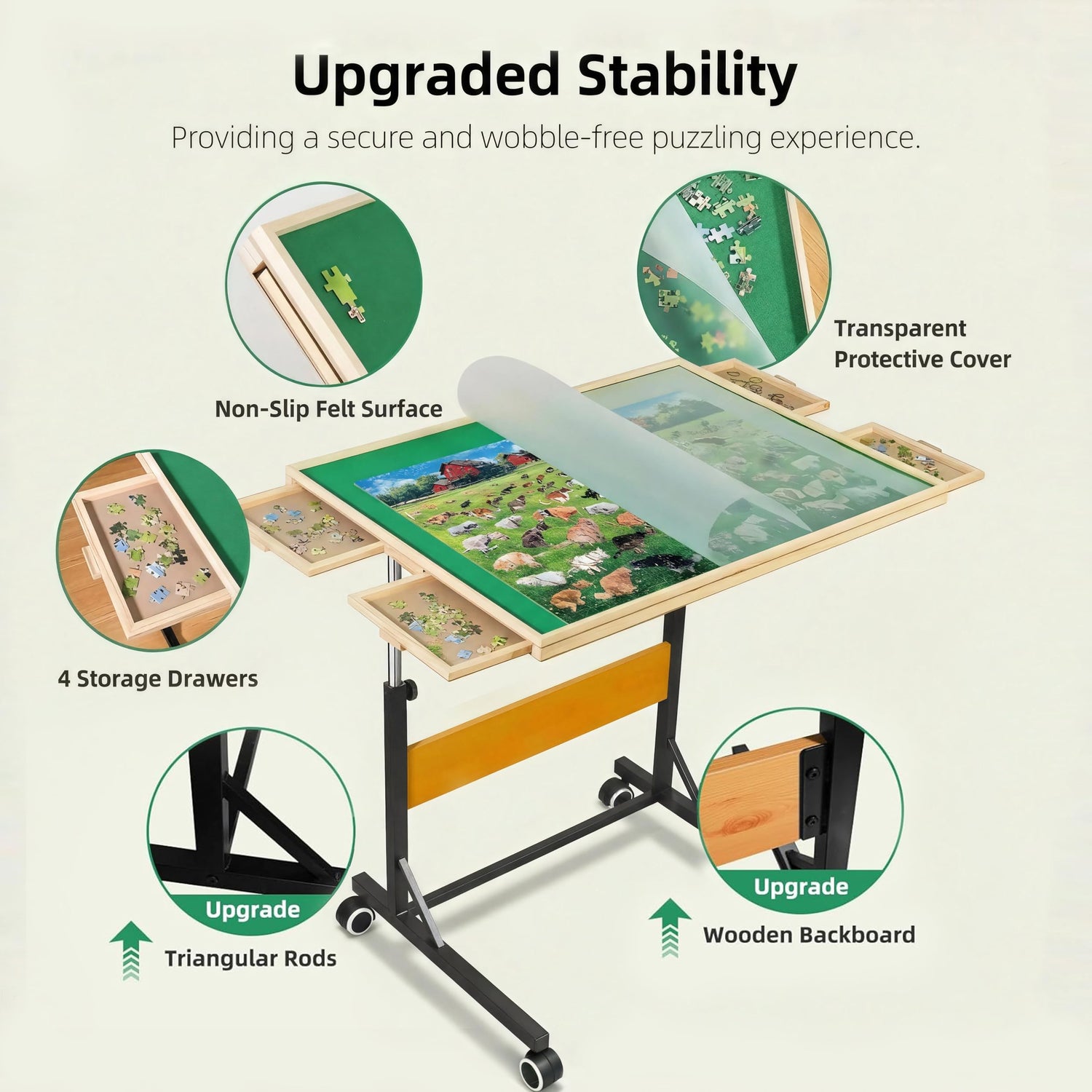 - 【Lightweight Design with Enhanced Stability】Built with an optimized lightweight structure that’s easy to maneuver—especially convenient for seniors—while reinforced legs ensure strong, wobble-free stability for a secure puzzling experience.