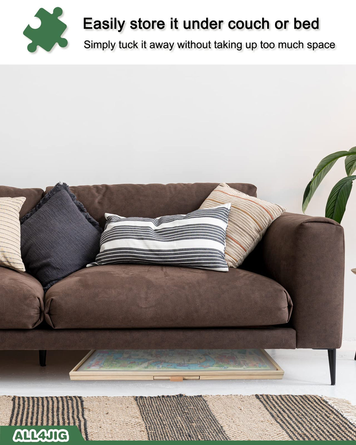 - 【5s Easy to Stow Away & Transport Puzzle】Easy lift, lightweight and balanced for quick storage.You can place your puzzle table onto any surface, countertops, coffee tables, beach blankets or even the floor.When you need an extra space for seating or dining,Just simply cover your puzzle with the puzzle cover,close the drawers and move it away under a couch or bed can your puzzle be well-stored and safely kept easily in a few seconds.