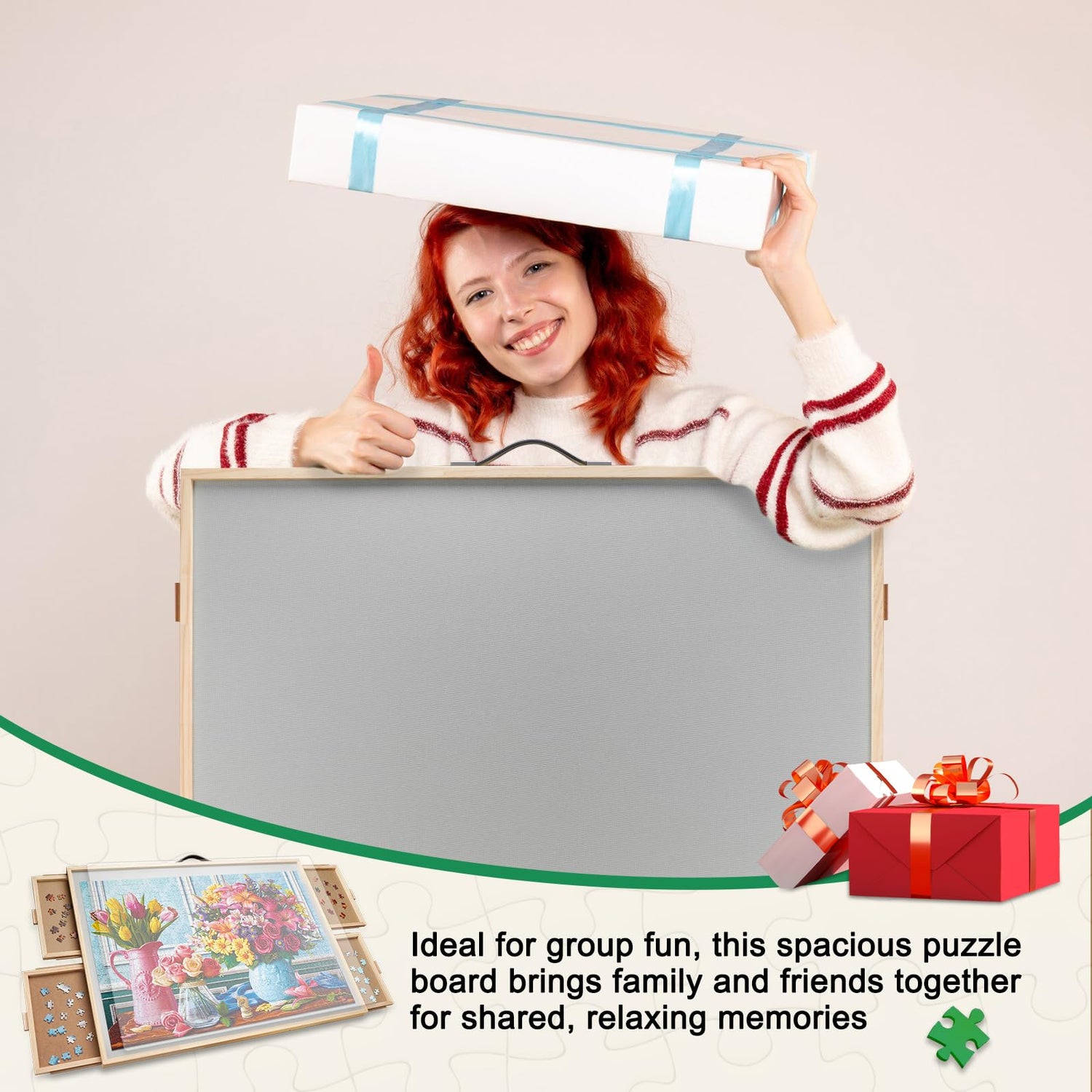 - Organized Storage with 4 Drawers:Four spacious sorting drawers keep your puzzle pieces accessible and secure. When not puzzling, the board doubles as a writing desk, game table, or coffee table, adding versatility to any room