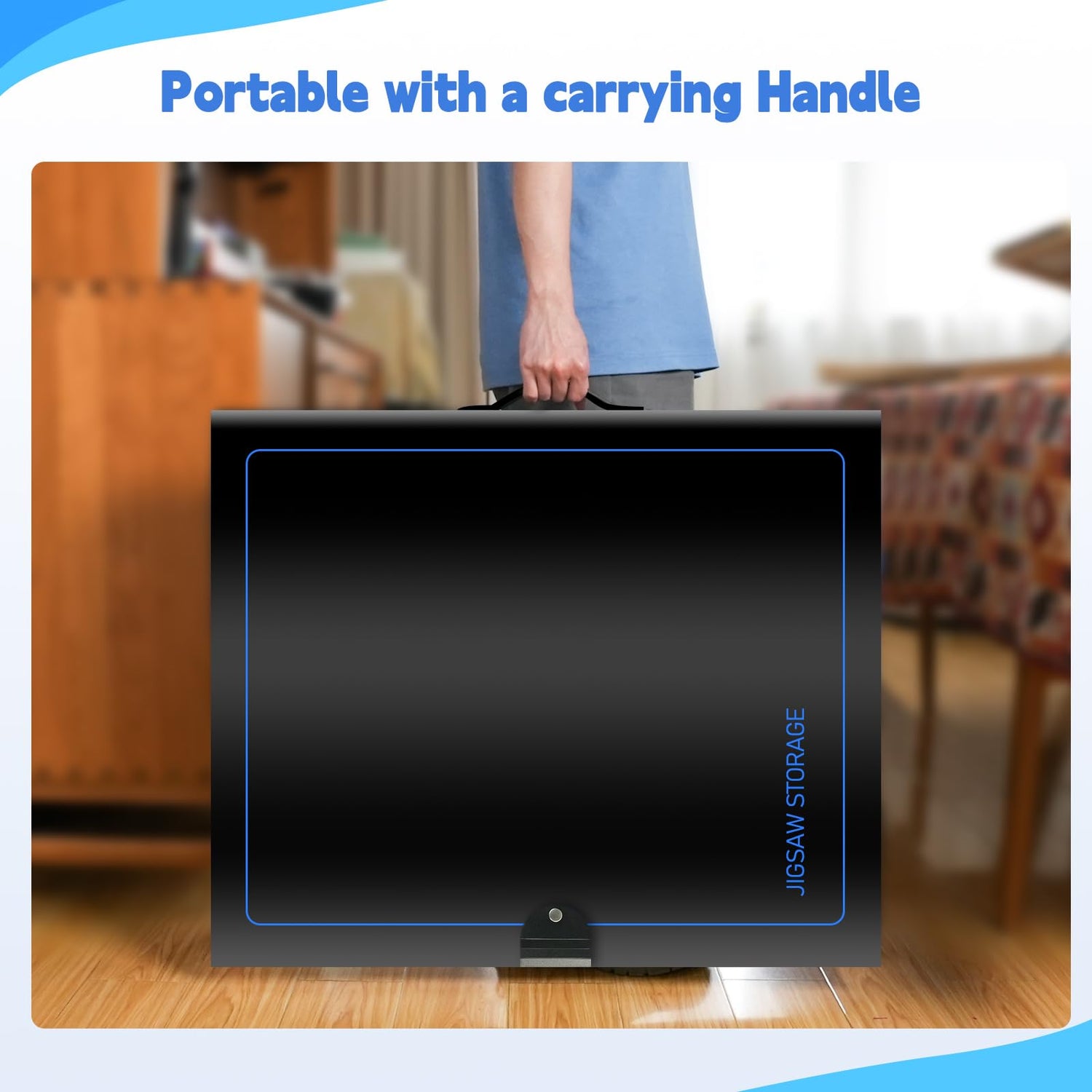 • Seamless Portability for Puzzle Enthusiasts: This portable puzzle storage folder, crafted with mobility in mind, is a game-changer for jigsaw enthusiasts. The handle ensures you can carry your entire collection with ease, transforming how puzzles are transported. Ideal for cozy home corners, outdoor settings, or travel, our storage folder maintains your puzzles' integrity, ready for use at any moment. It's a perfect blend of a puzzle box stand and a portable bag, offering unrivaled convenience.