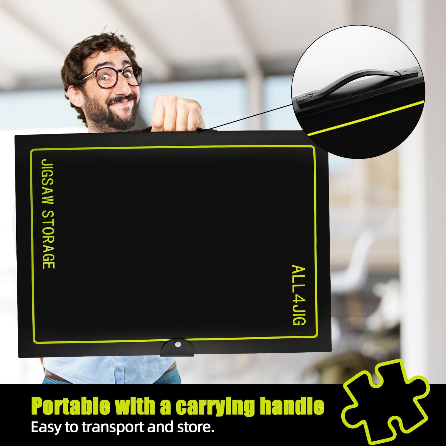- Seamless Portability for Puzzle Enthusiasts: This portable puzzle storage folder, crafted with mobility in mind, is a game-changer for jigsaw enthusiasts. The handle ensures you can carry your entire collection with ease, transforming how puzzles are transported. Ideal for cozy home corners, outdoor settings, or travel, our storage folder maintains your puzzles' integrity, ready for use at any moment. It's a perfect blend of a puzzle box stand and a portable bag, offering unrivaled convenience.