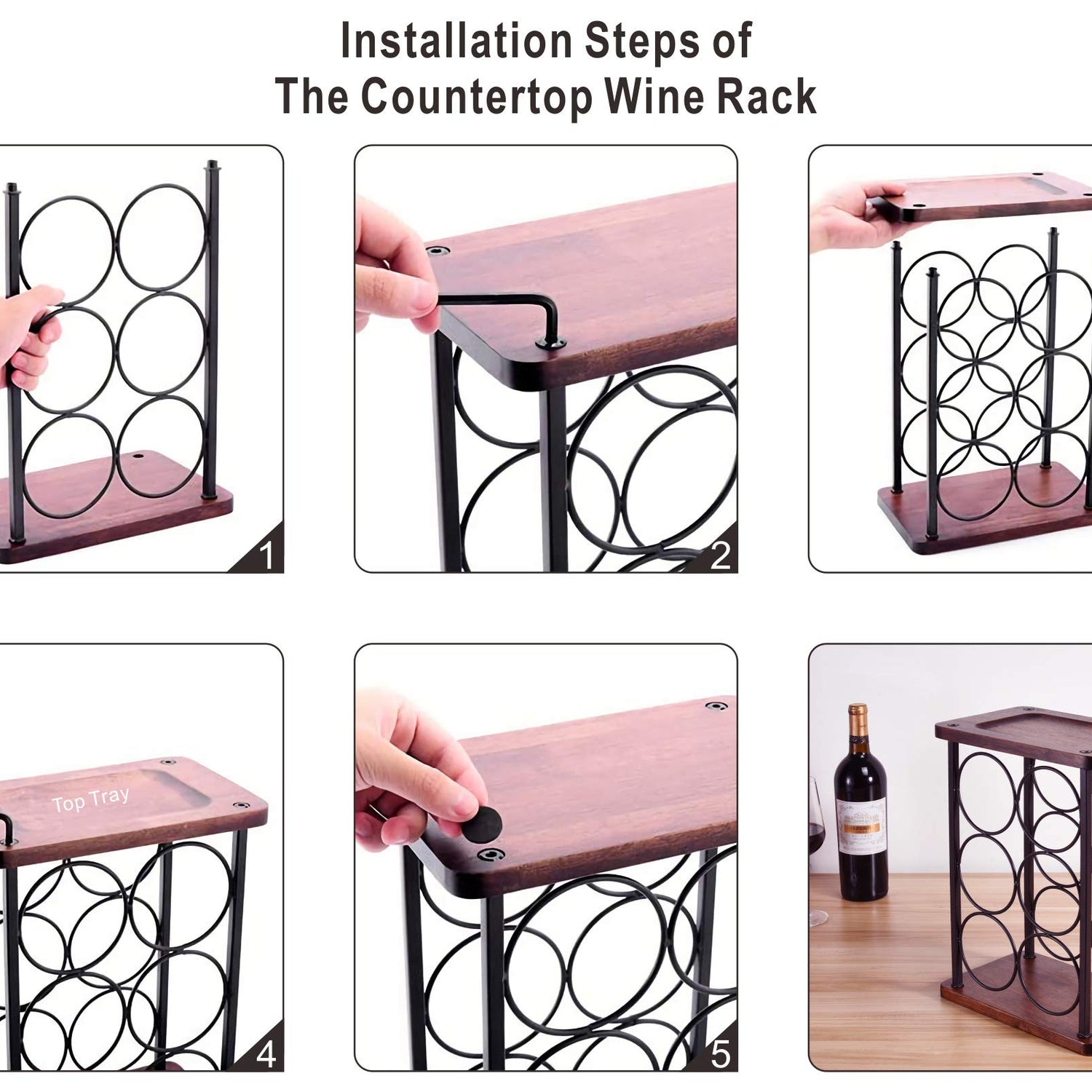 - ★【Space Saving Design】The countertop wine rack has room for up to 6 standard bottles(Diameter less than 3.46inch) of your favorite wine. There is a small practical tray at the top, and some simple things (bottle openers and corks) make the whole wine rack more practical and rich.
