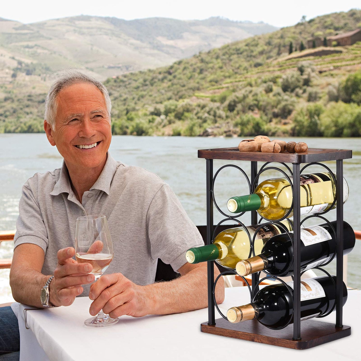 ALLCENER Countertop Wine Rack, Wood Wine Bottle Holder, Perfect for Home Decor & Kitchen Storage Rack, Bar, Cellar, Cabinet, Pantry, etc (Hold 6 Bottles)
