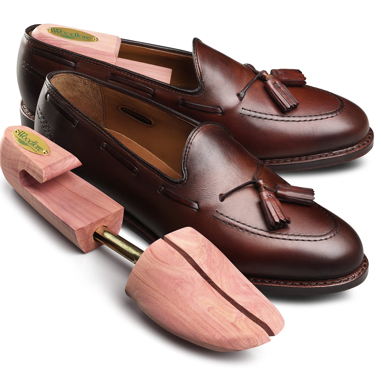 Details: Woodlore, a brand of Allen Edmonds, is well known for providing the highest level of shoe care with its premium selection Cedar Shoe Trees, which are expertly crafted using 100% natural aromatic cedar wood to protect the leather, fabric, stitching, and soles from wear and tear caused by moisture damage. Our shoe trees absorb moisture and sweat to prevent natural odors from developing, providing your shoes with a clean, refreshing scent. They will preserve the shoes’ original shape, form, and length and prevent cracks and creases. Its adjustable design fits all shoe brands and sizes. Woodlore Shoe Trees are USA made from sustainably grown red cedar trees, which are rich with red heartwood. Known for its moisture absorption properties and natural fragrance oils, this is what keeps your shoes looking and smelling great. Each shoe tree is guaranteed to contain a minimum of 80% red heartwood. Combined with a silken finish, and the heaviest gauge brass-plated hardware for extra durability, you get the best craftsmanship you’ll find in a shoe tree, while efficiently prolonging the lifespan of your finest shoes.