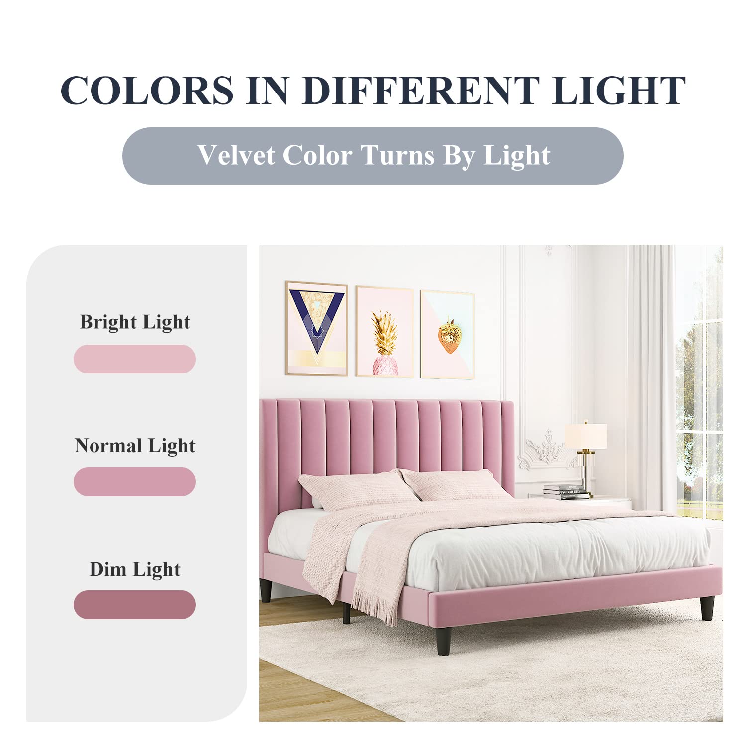 - Tips: The bed has different colors under different lights, the color of the bed frame will be lighter under bright light, and the color will be darker under dim light