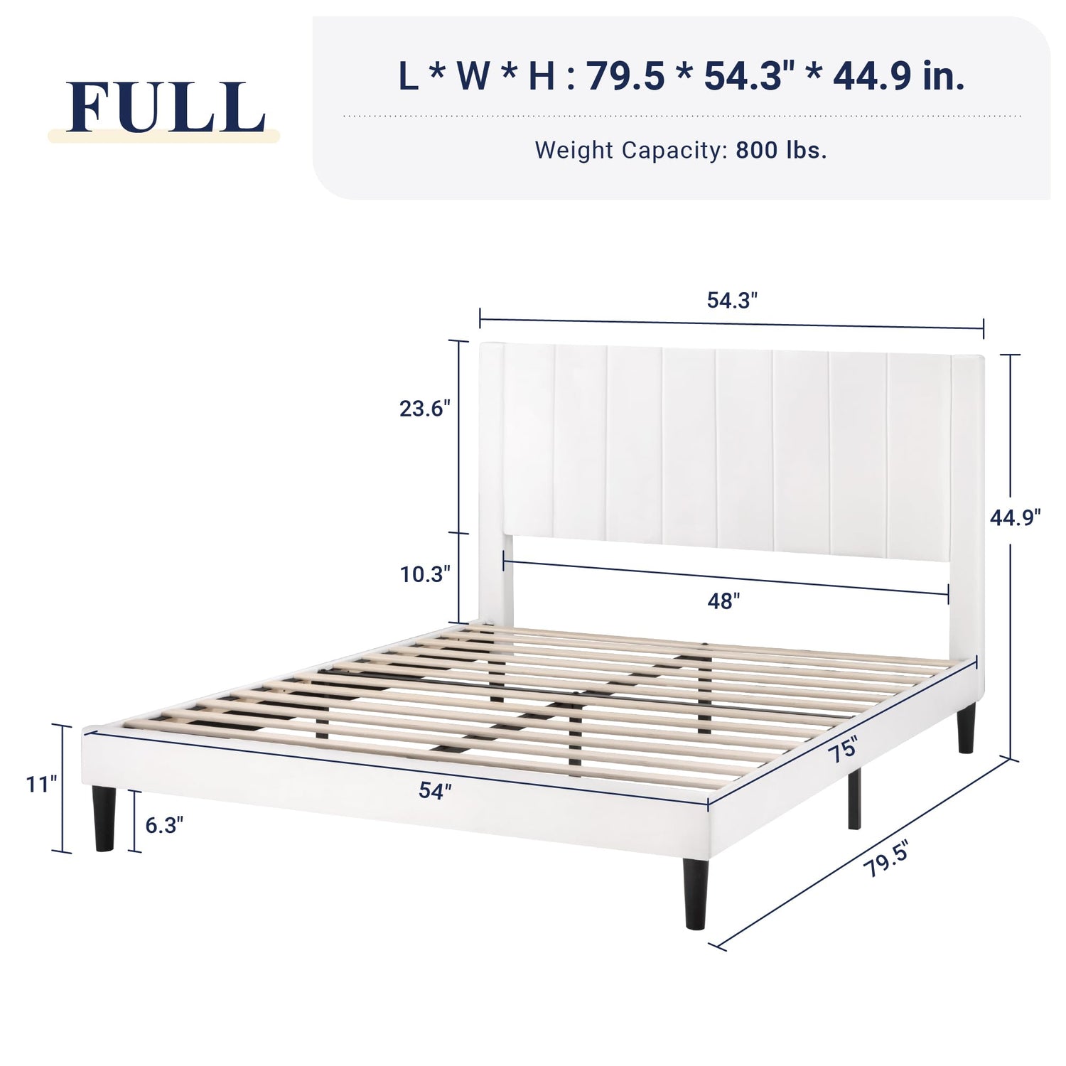 Allewie Full Platform Bed Frame/Velvet Upholstered Bed Frame with Vertical Channel Tufted Headboard/Strong Wooden Slats/Mattress Foundation/Box Spring Optional/Easy Assembly/White