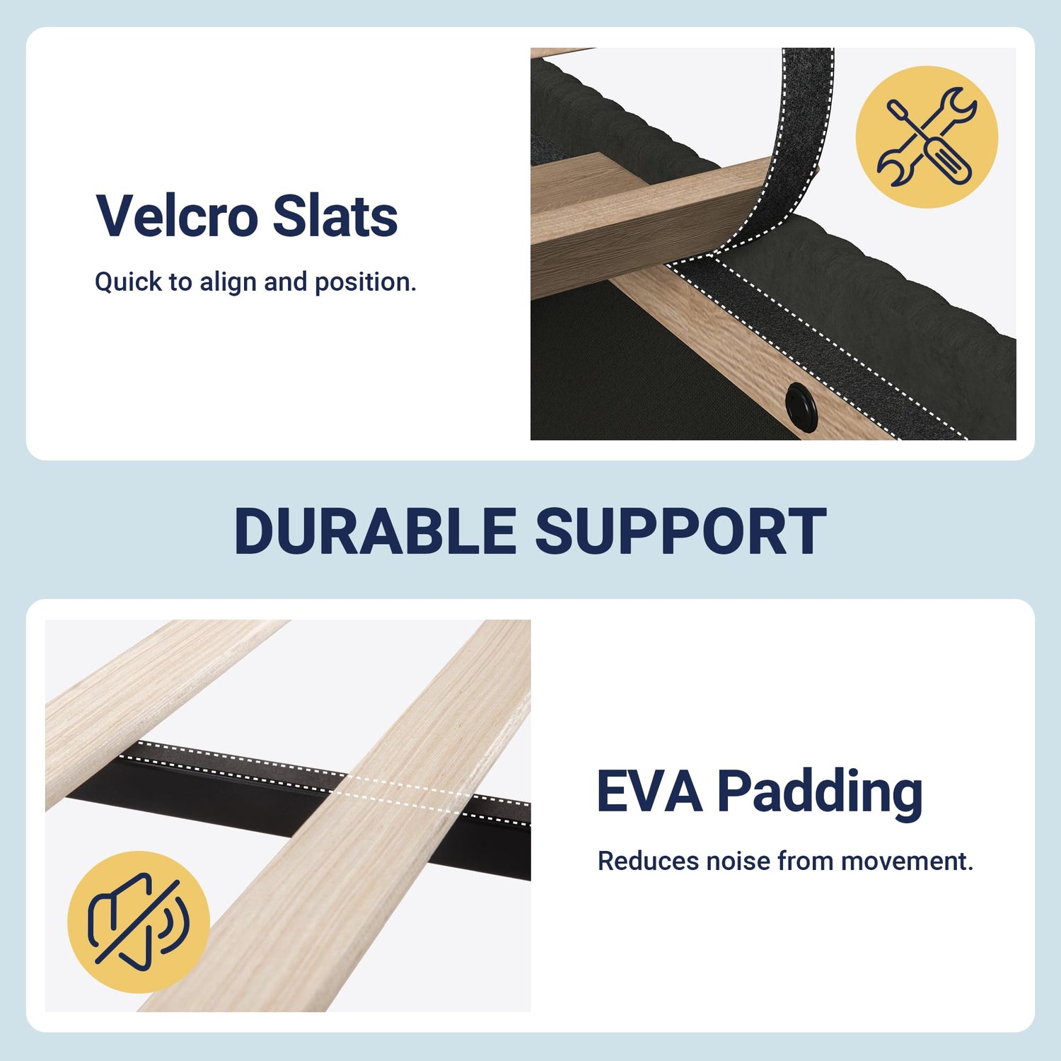 - No Box Spring Needed: The bed frame full includes 12 slats that support the mattress directly, and EVA foam strips help prevent creaking sounds—creating a quiet, steady base ideal for restful sleep