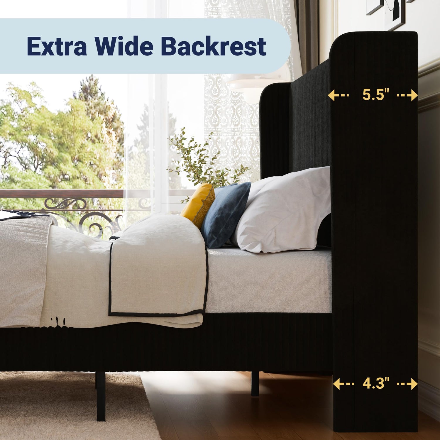 - Corduroy Wingback Headboard: The full size bed frame with a soft corduroy upholstered headboard, vertical tufting, and a wingback design. Combines comfort, firm support, and a refined modern aesthetic for any bedroom space