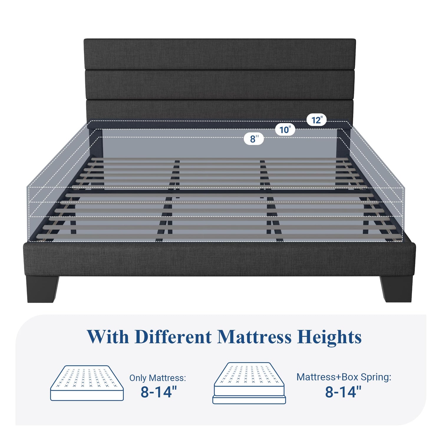 Allewie Dark Grey King Size Platform Bed Frame with Upholstered Headboard and Wooden Slats