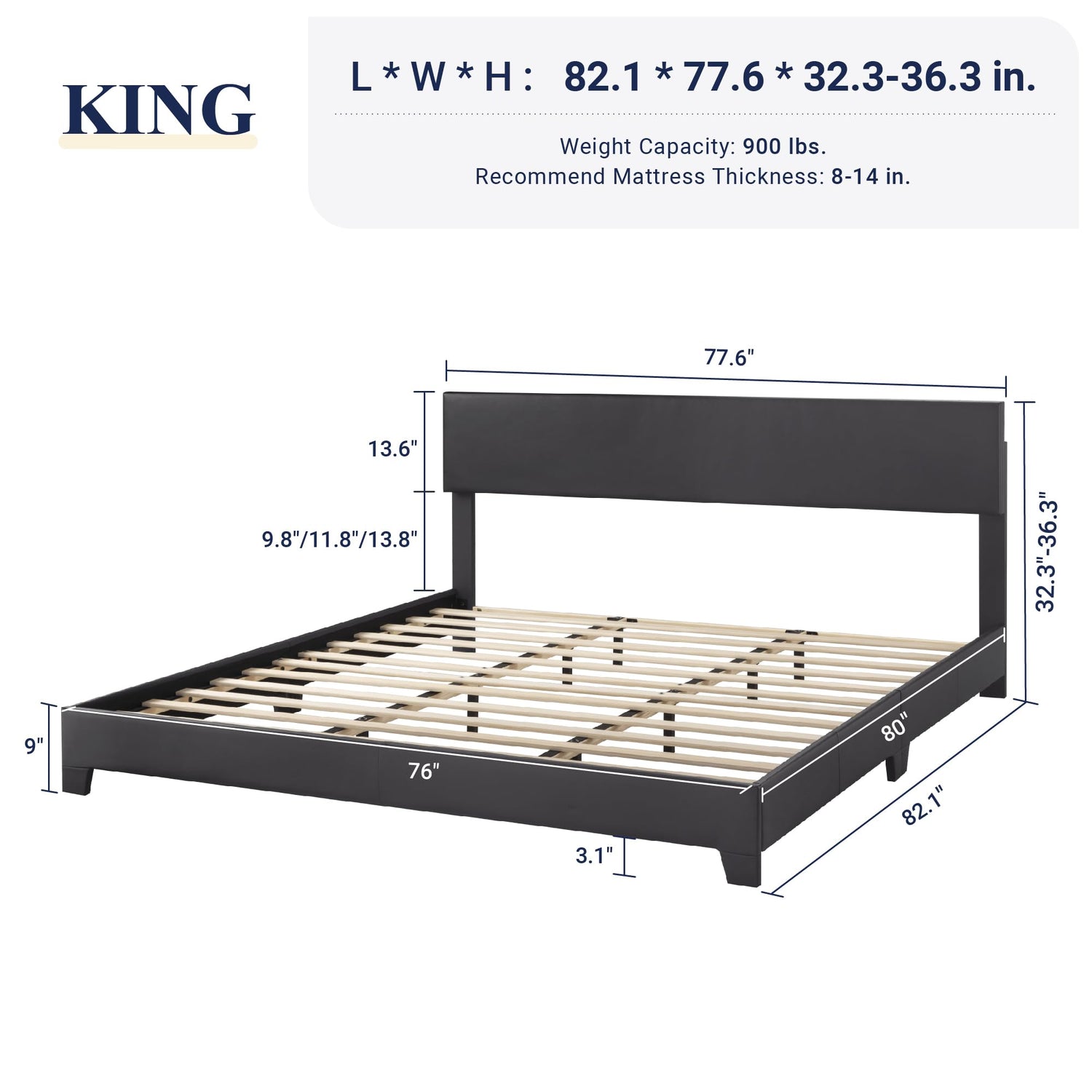 - Adjustable Headboard: The headboard of the bed frame has 3 height levels: 32.3, 34.3, and 36.3 inches, which can accommodate mattresses 8-14 inches thick.