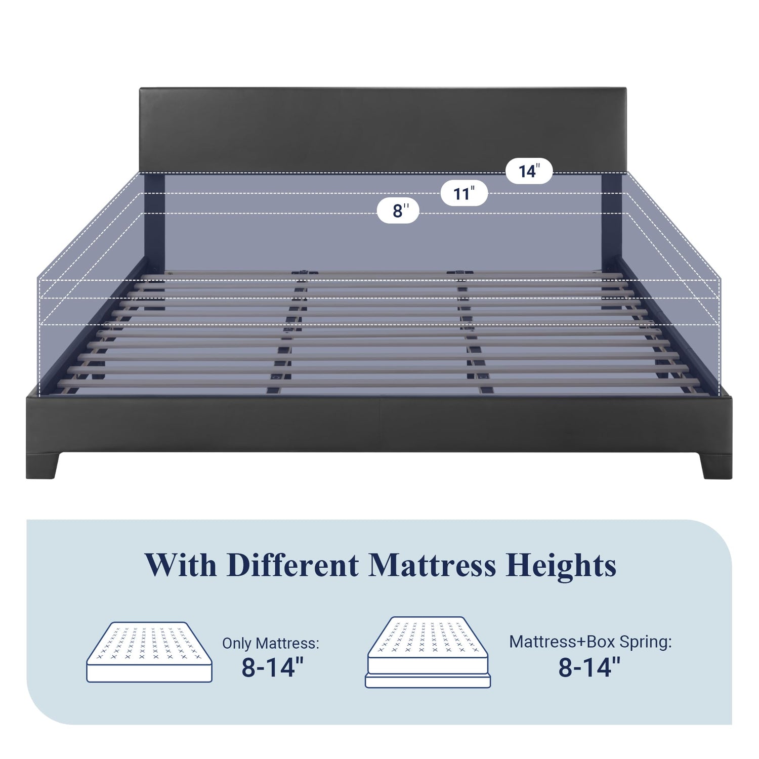 - All-Match Fashion& Comfort: The bed frame is crafted from high-quality faux leather, giving it a sleek look. The design is simple yet elegant, making it a versatile choice for any bedroom decor. The leather material is waterproof and easy to clean