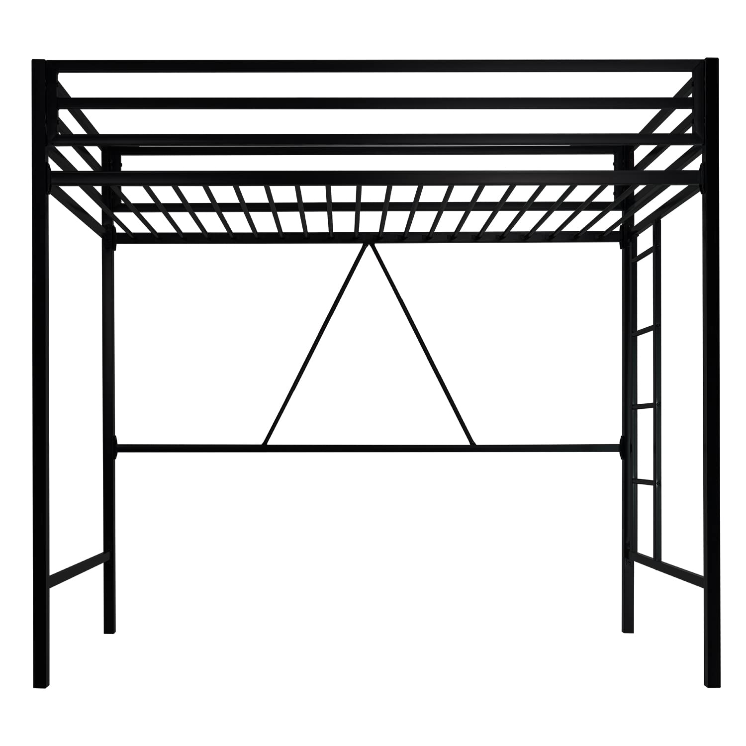 Allewie Metal Loft Bed Twin Size with Guardrail and Ladder, Small Space Saving Design for Bedroom Kid Room and Dorm, No Box Spring Needed, Black