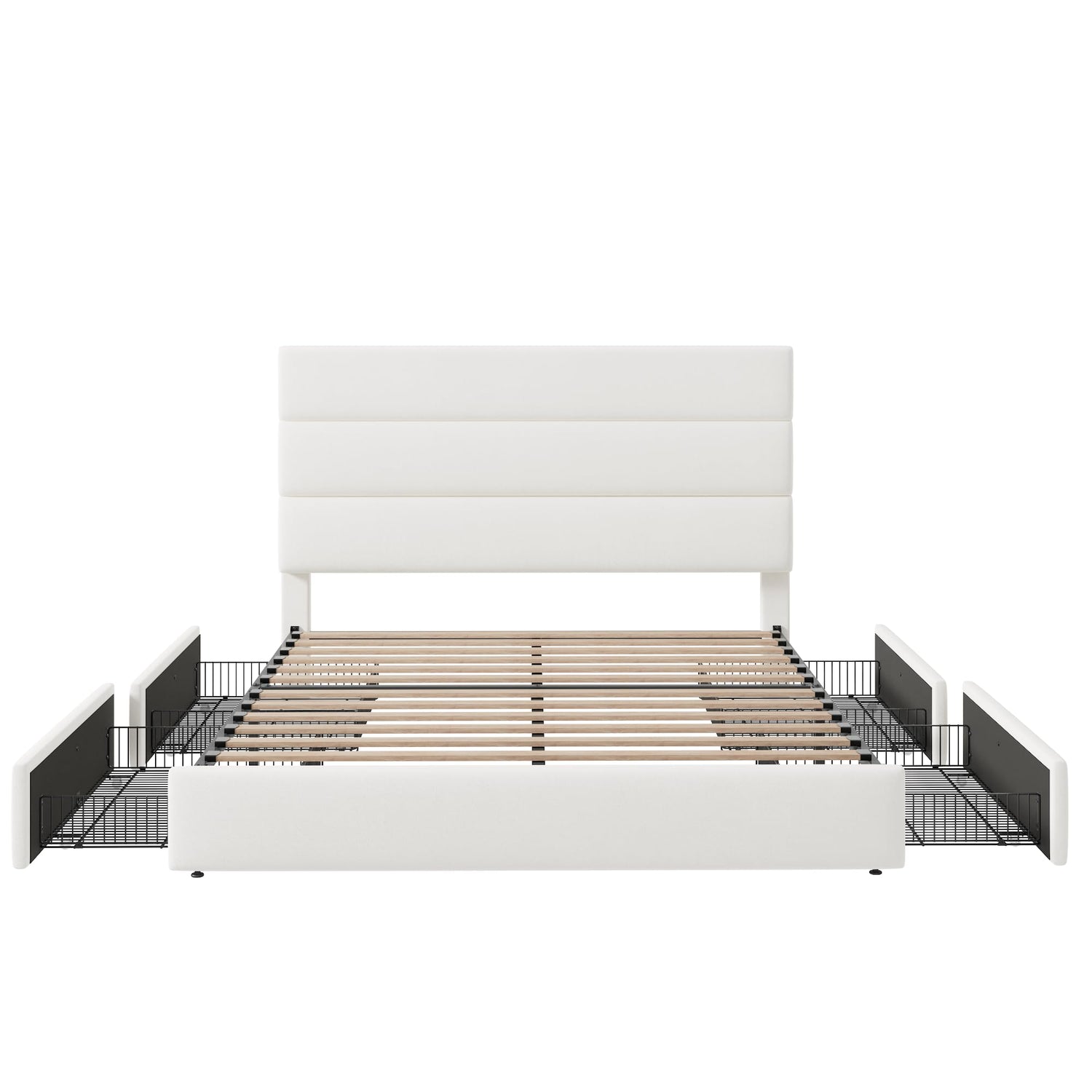 - Ample Under‑Bed Storage: Four large pull‑out drawers on smooth, silent rollers give this queen storage bed hidden space for bedding, seasonal clothing, or shoes—maximizing organization without sacrificing floor area.