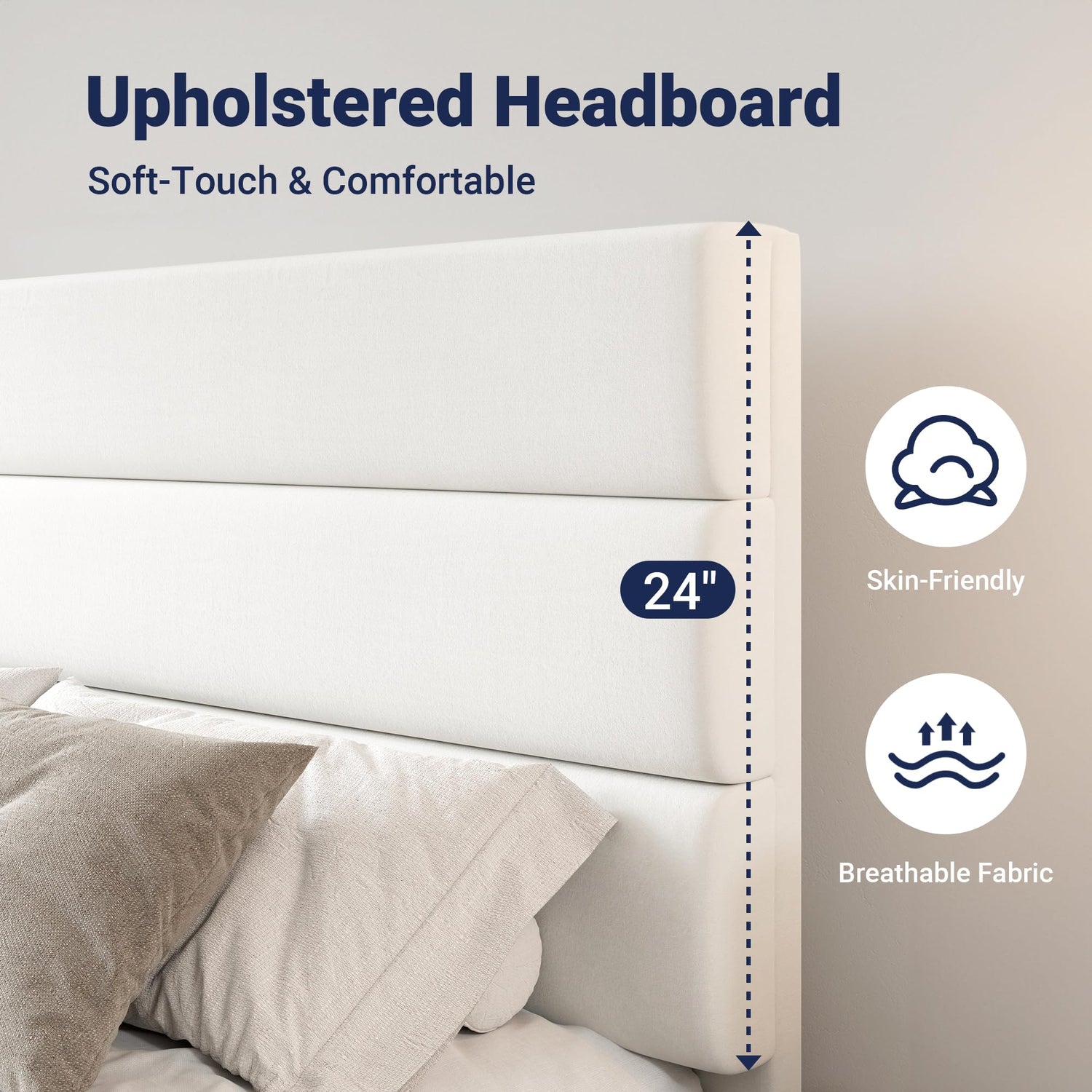 - Oversized Padded Headboard: The three‑panel, foam‑filled headboard on this queen bed offers plush back support for reading or lounging, combining comfort and contemporary style in one statement piece.