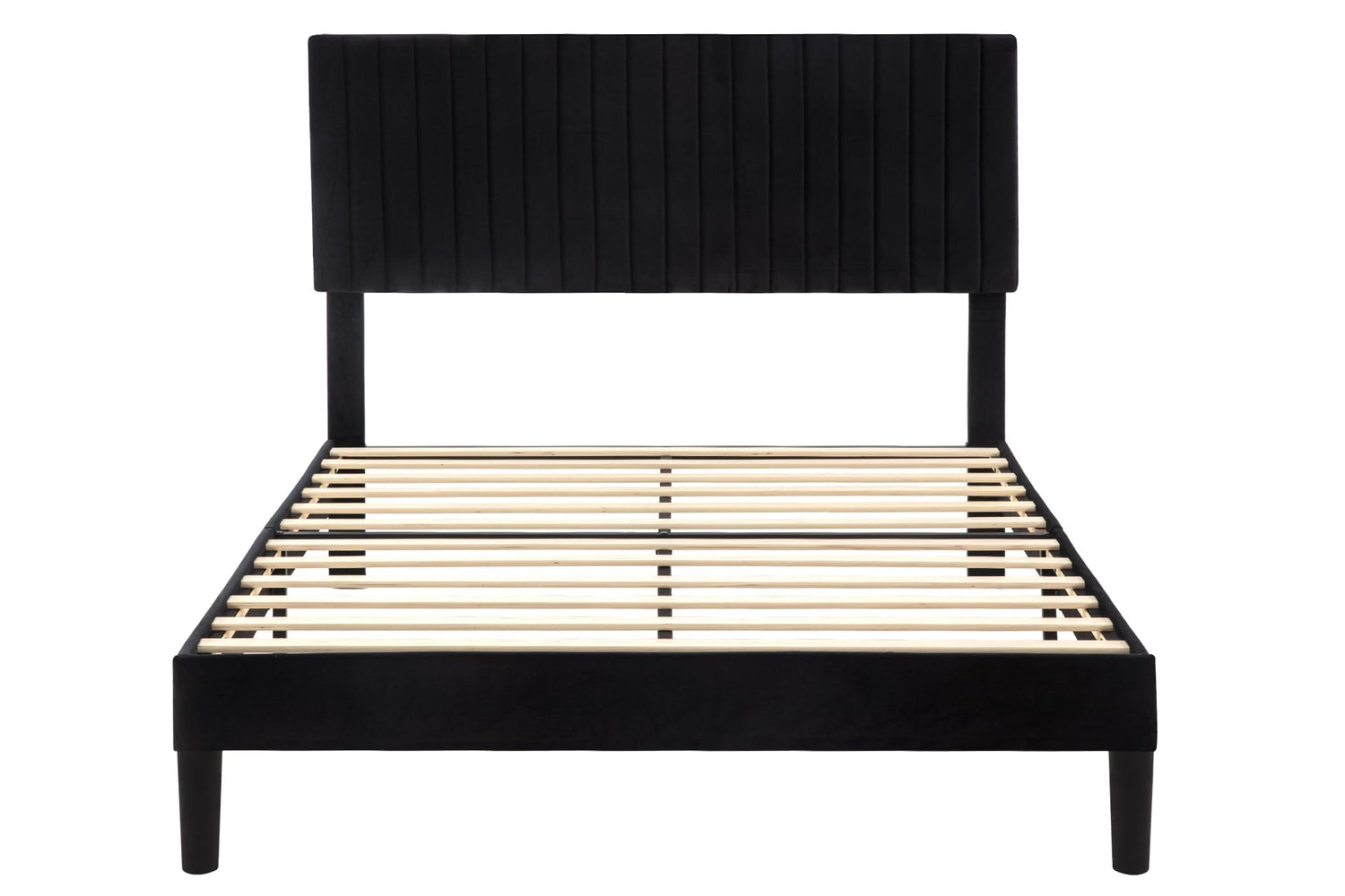 Allewie Queen Bed Frame, Velvet Upholstered Platform Bed with Vertical Channel Tufted Headboard, Mattress Foundation with Strong Wooden Slats, Box Spring Optional, Easy Assembly, Black