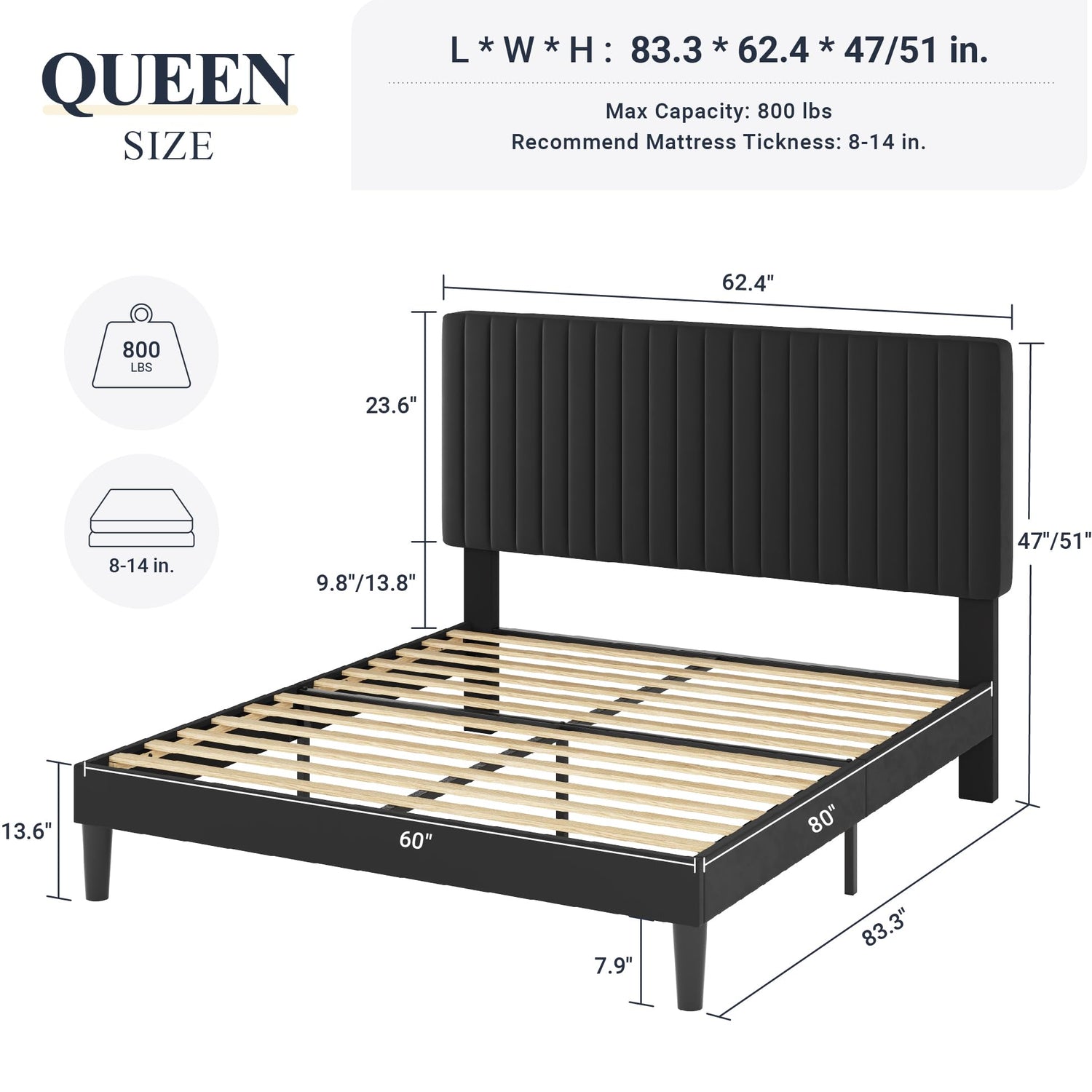 - Elegant and Functional: The adjustable vertical channel tufted headboard adds a touch of elegance and sophistication to your space, while the black color complements any decor