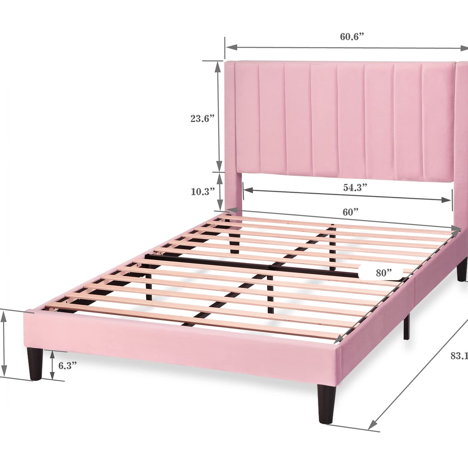 Allewie Queen Platform Bed Frame/Velvet Upholstered Bed Frame with Vertical Channel Tufted Headboard/Strong Wooden Slats/Mattress Foundation/Box Spring Optional/Easy Assembly/Pink
