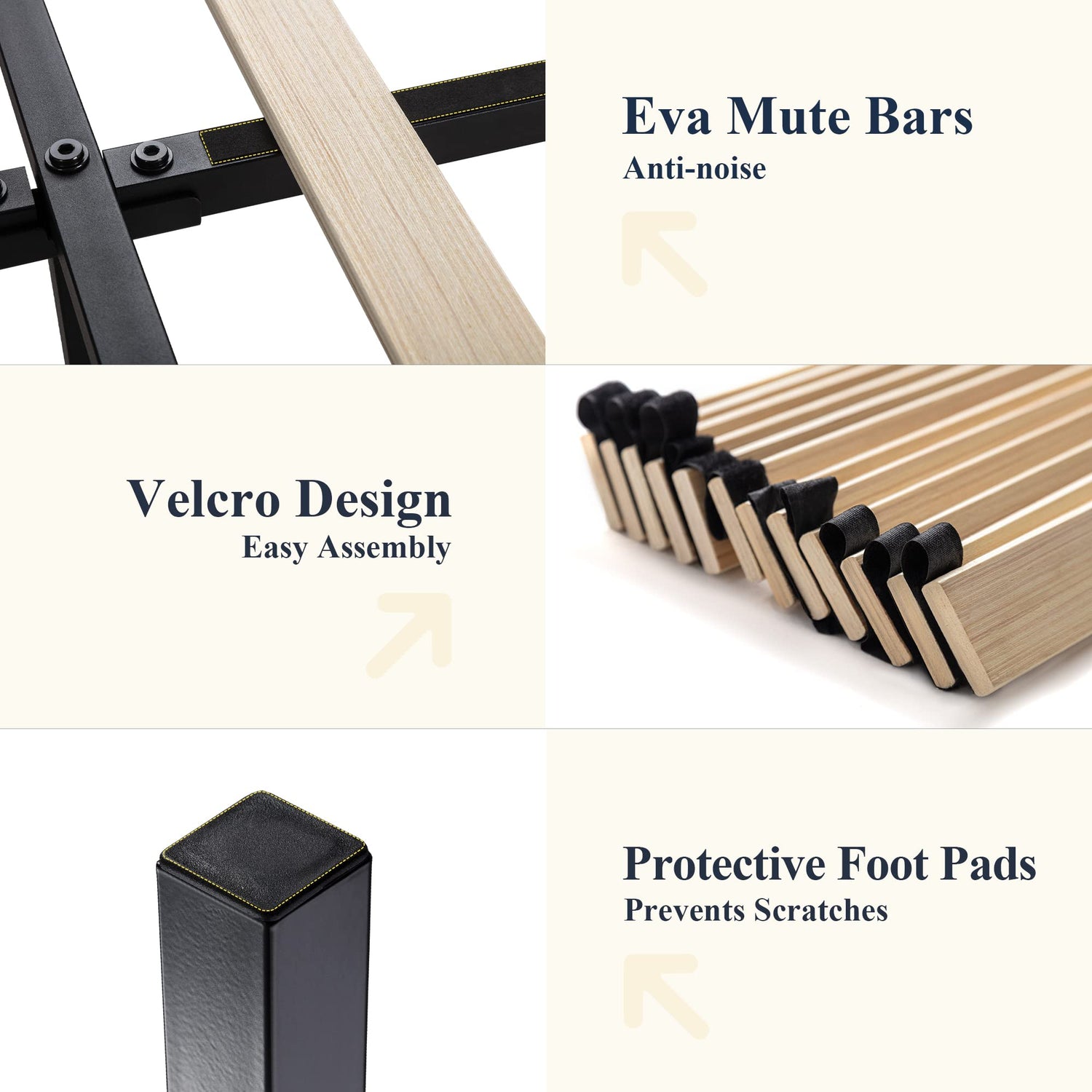 - NOISE-FREE: Velcro and EVA mute bars prevent the mattress from moving and avoid friction between the metal frame and the solid wood slats, effectively eliminating noise, and bringing you a quiet and comfortable sleeping experience