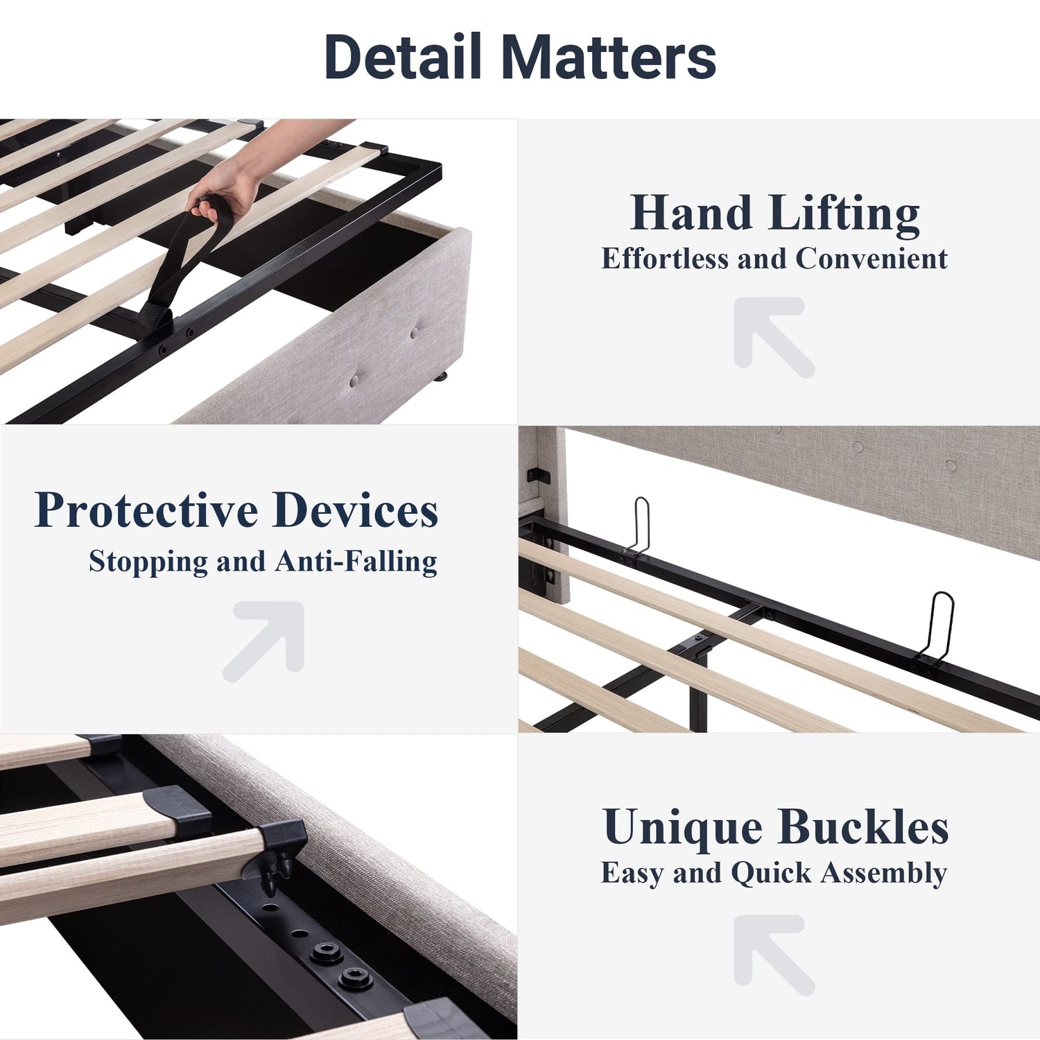 Allewie Queen Size Lift Up Storage Bed, Button Tufted Headboard with Wingback, Hydraulic Support, No Box Spring Needed, Light Beige