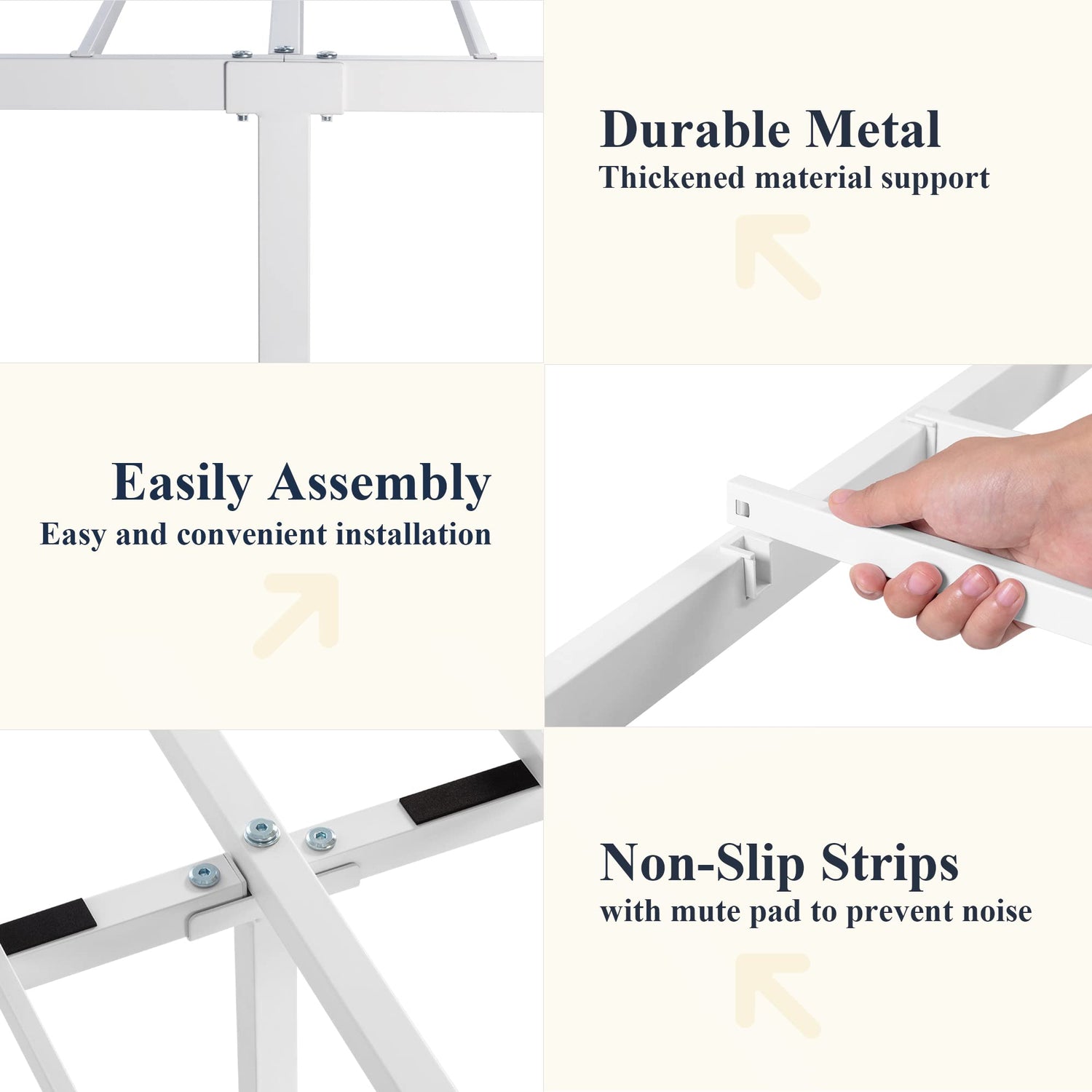 Built to last, the sturdy metal structure is capable of supporting up to 800 pounds, coupled with thickened bed feet to prevent any wobbling. The powder-coated finish provides rust and wear resistance, ensuring that your bed remains as beautiful as the day you brought it home.