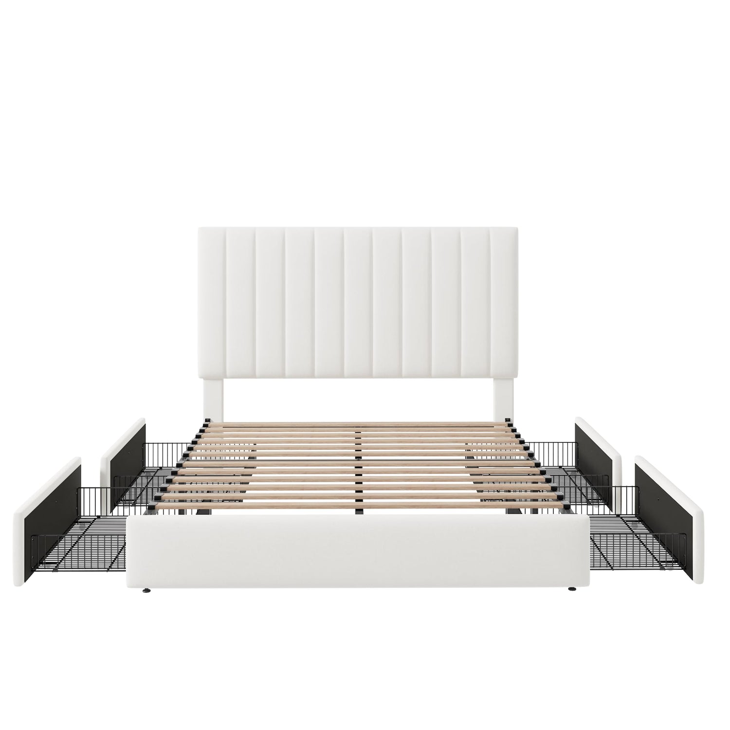 - 4 Oversized Drawers:The upholstered queen bed frame comes with four spacious storage drawers underneath, providing ample space for bed sheets, accessories and off-season clothing. Each drawer has four smooth wheels that make them easy to pull in and out