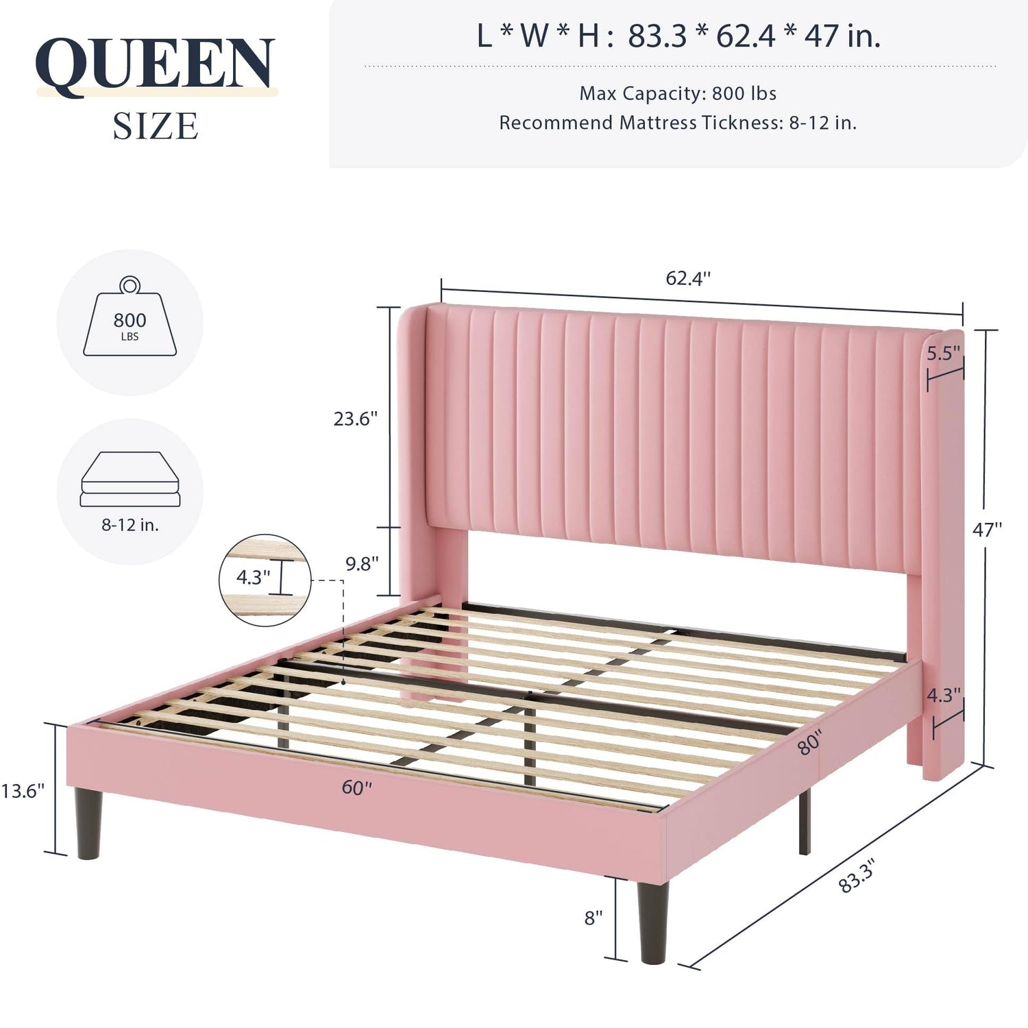 - Comfortable and Elegant: Designed in a modern wingback headboard, smooth velvet, and soft sponge wrap the entire bed frame, which will add sophisticated style to any bedroom