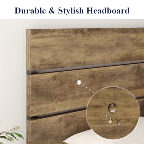 Allewie Twin Size Rustic Platform Bed Frame with Wood Headboard and Metal Slats - Light Brown