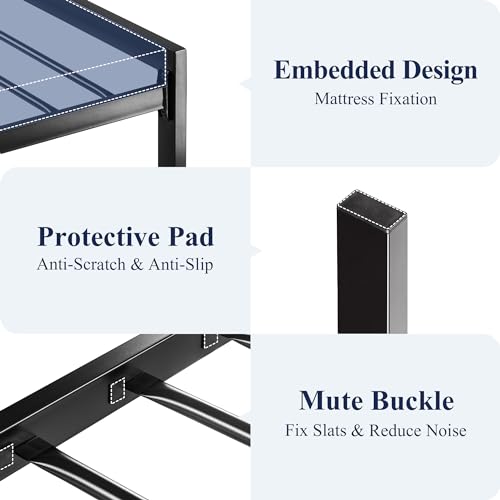 The Allewie bed promises solid support, thanks to its quality steel slats that cater to all types of mattresses—be it foam, latex, or spring—without the need for a box spring. Say goodbye to the days of noisy sleep; the design includes a cushion on the beam to prevent metal friction noise and a secure tailboard to keep your mattress in place, ensuring peaceful nights.