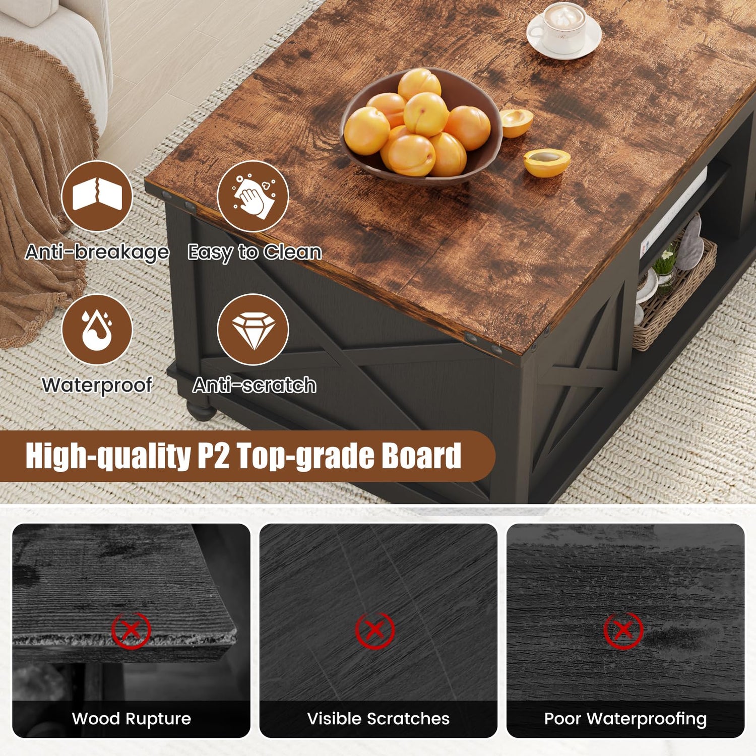 - 【Packaging Protection & Easy Assembly】: The farmhouse coffee table with premium outer packaging materials and meticulous internal packaging procedures, the coffee table lift top remains intact throughout the logistics process, ensuring every item received is flawless. The coffee tables comes with simple and clear assembly instructions, assembly videos, and labeled accessories, allowing even beginners to easily complete assembly.